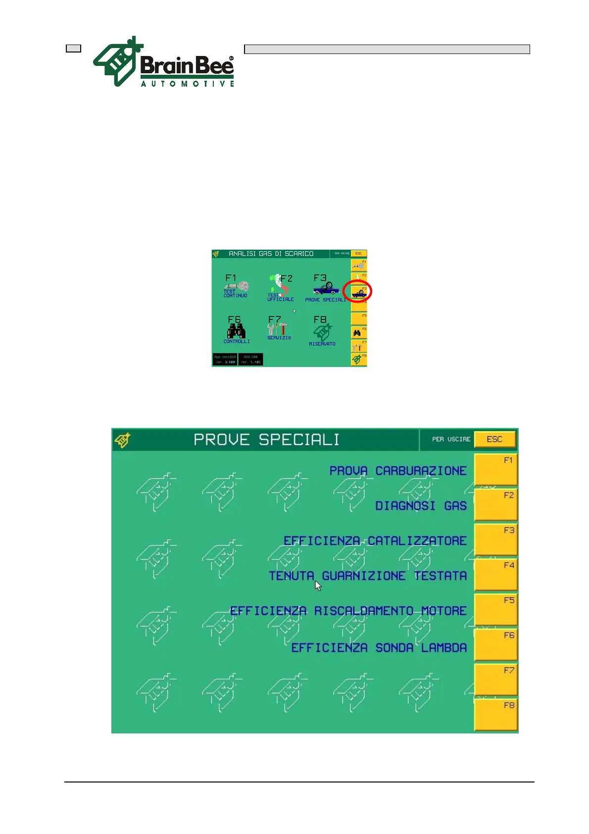 Access the main menu of the EXHAUST GAS ANALYZER and press F3 "SPECIAL