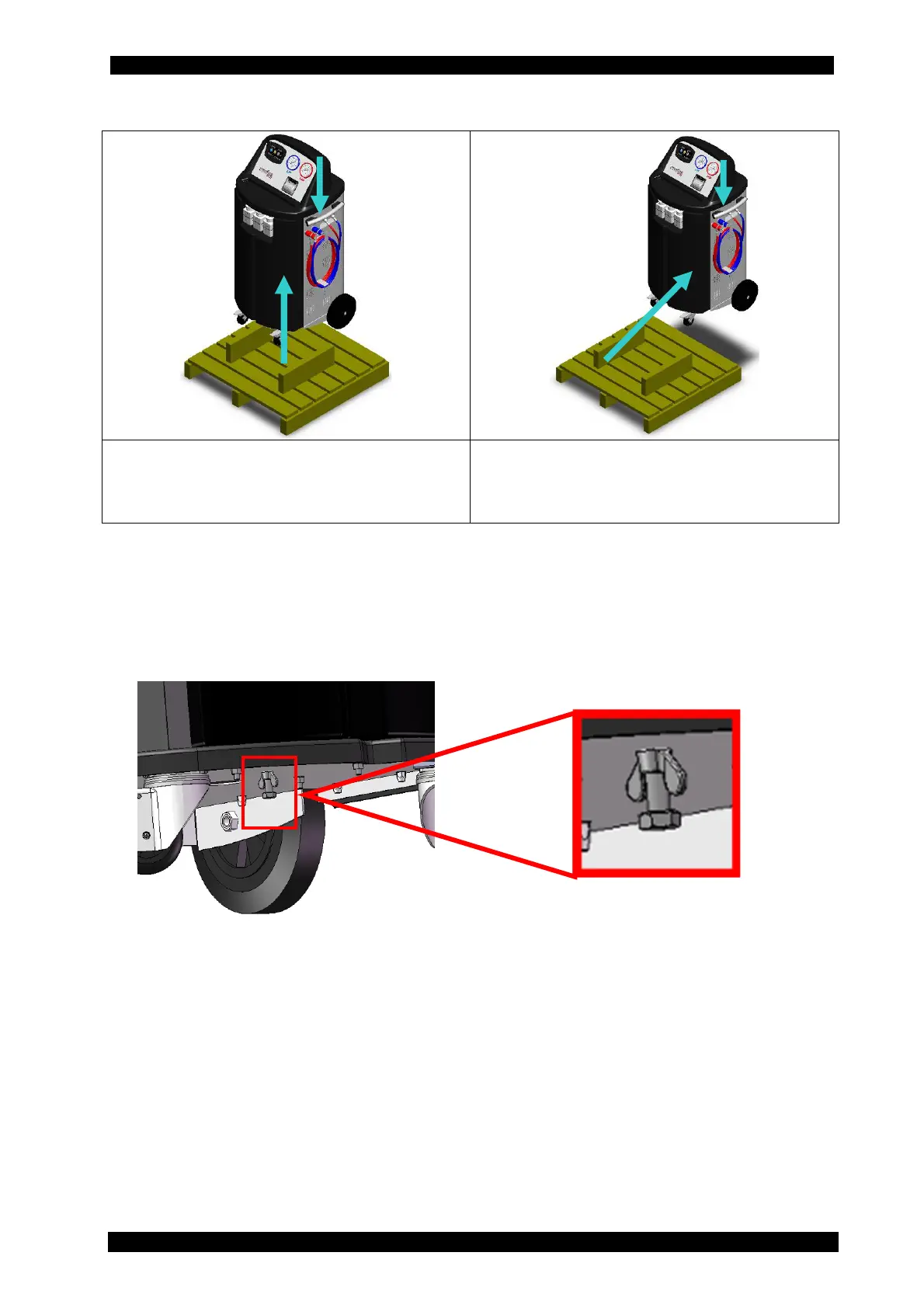 Keep the pallet, carton and scratch protection film for use when returning the unit. The unit rolls