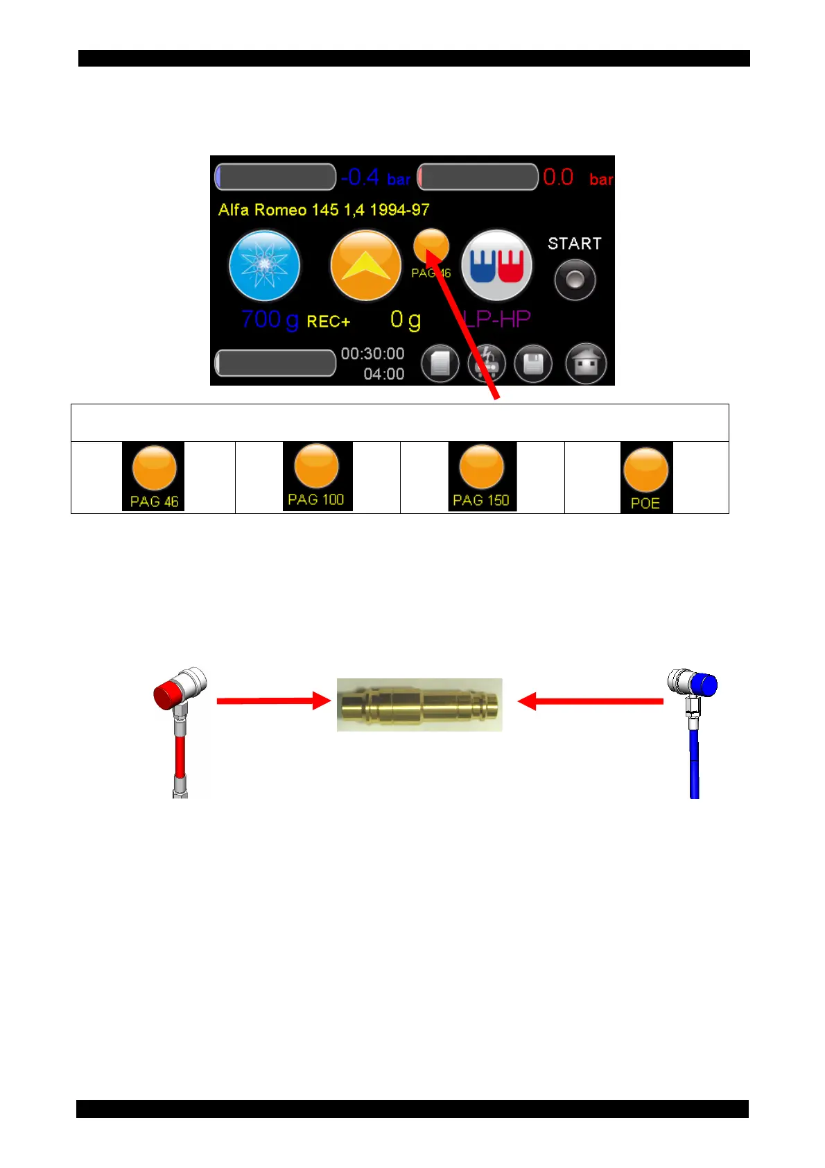 By selecting PAG oil as type, if different from that used for the previous service, at the START the