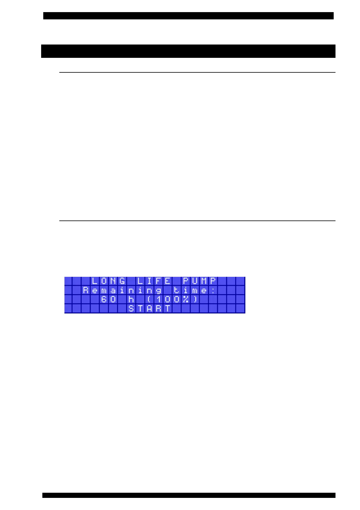 LONG LIFE PUMP procedure has to be started only after checking and, if necessary, topping