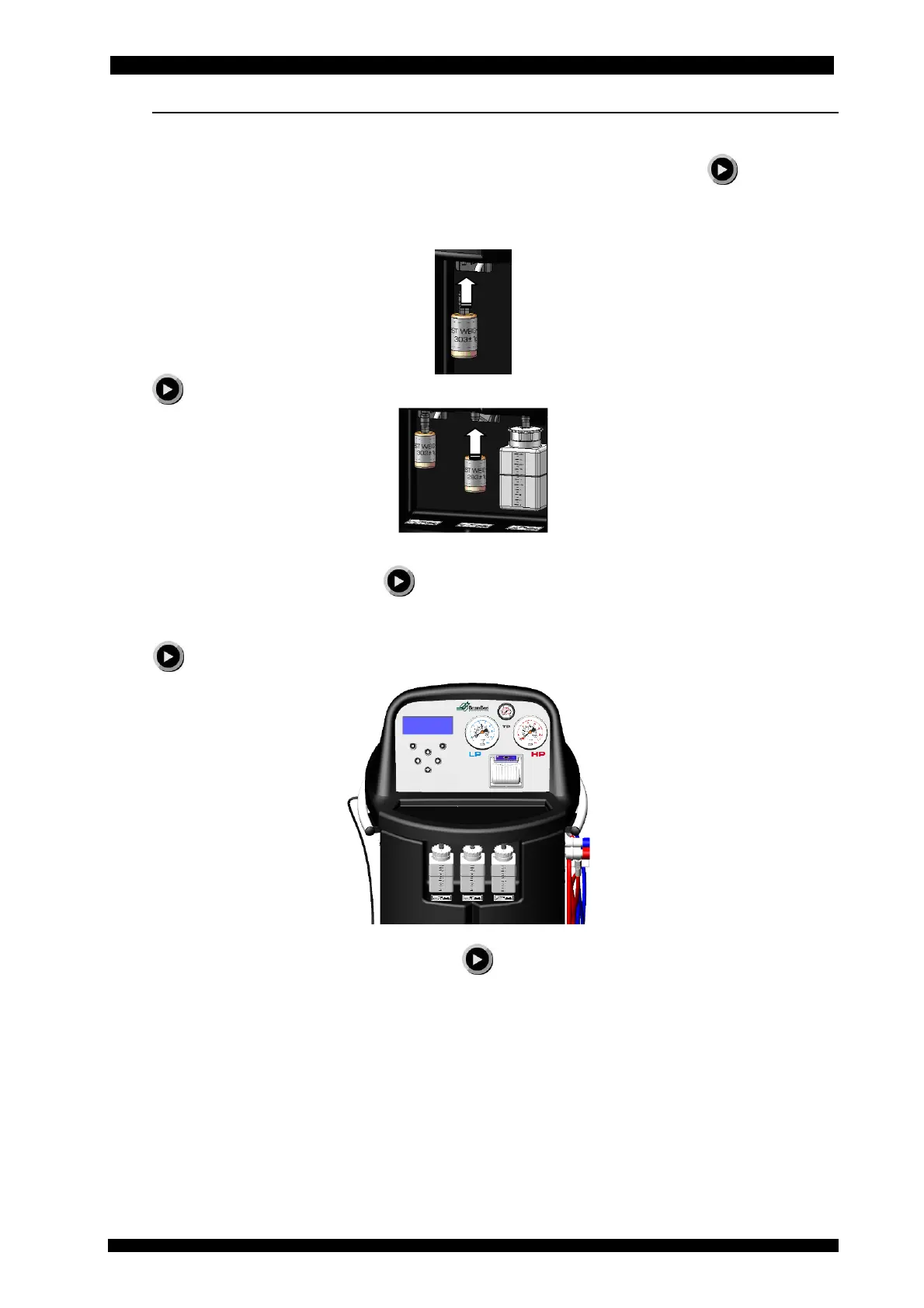 Remove the oil sample weights and insert the empty new oil and exhausted oil containers and