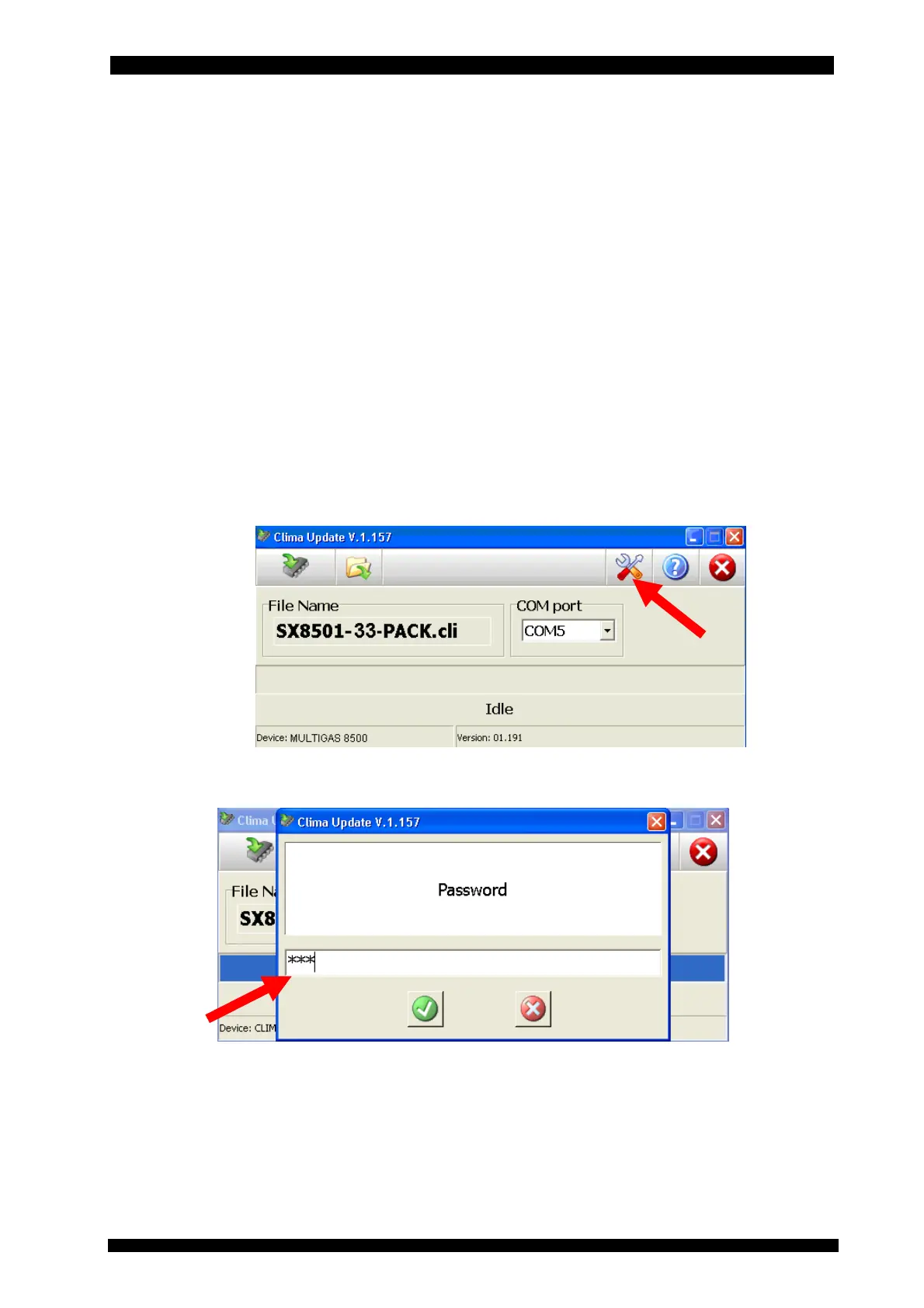 chap. 7.1), start the CLIMAUPDATE software and press the “tools” icon; right after that,