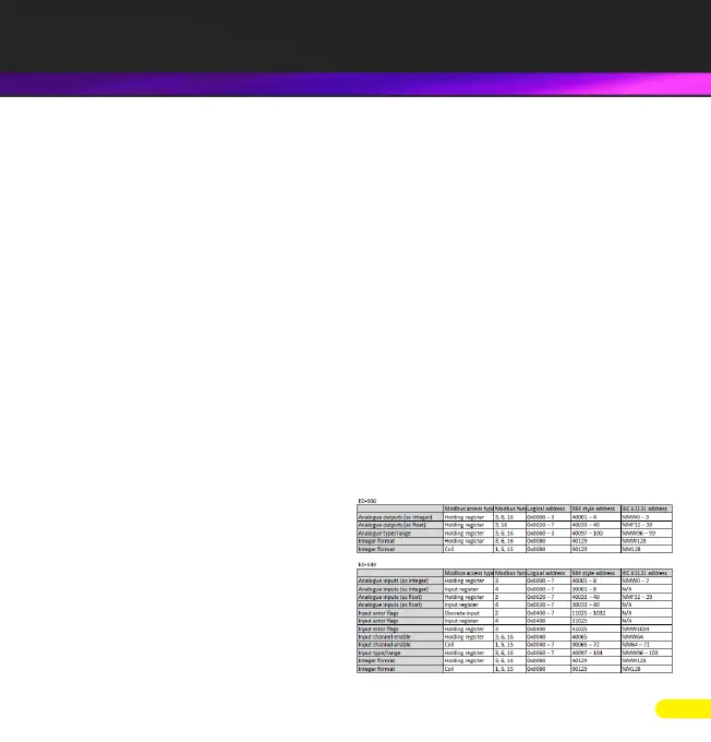 Modbus Address tables: detailed