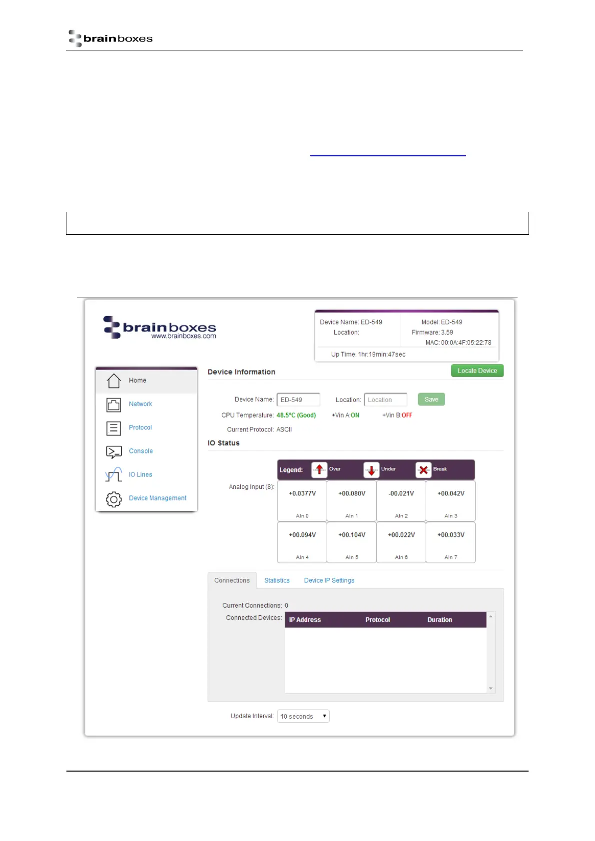 browser. To find the IP address of your device, see section 6.3 Finding and Installing an ED Device.