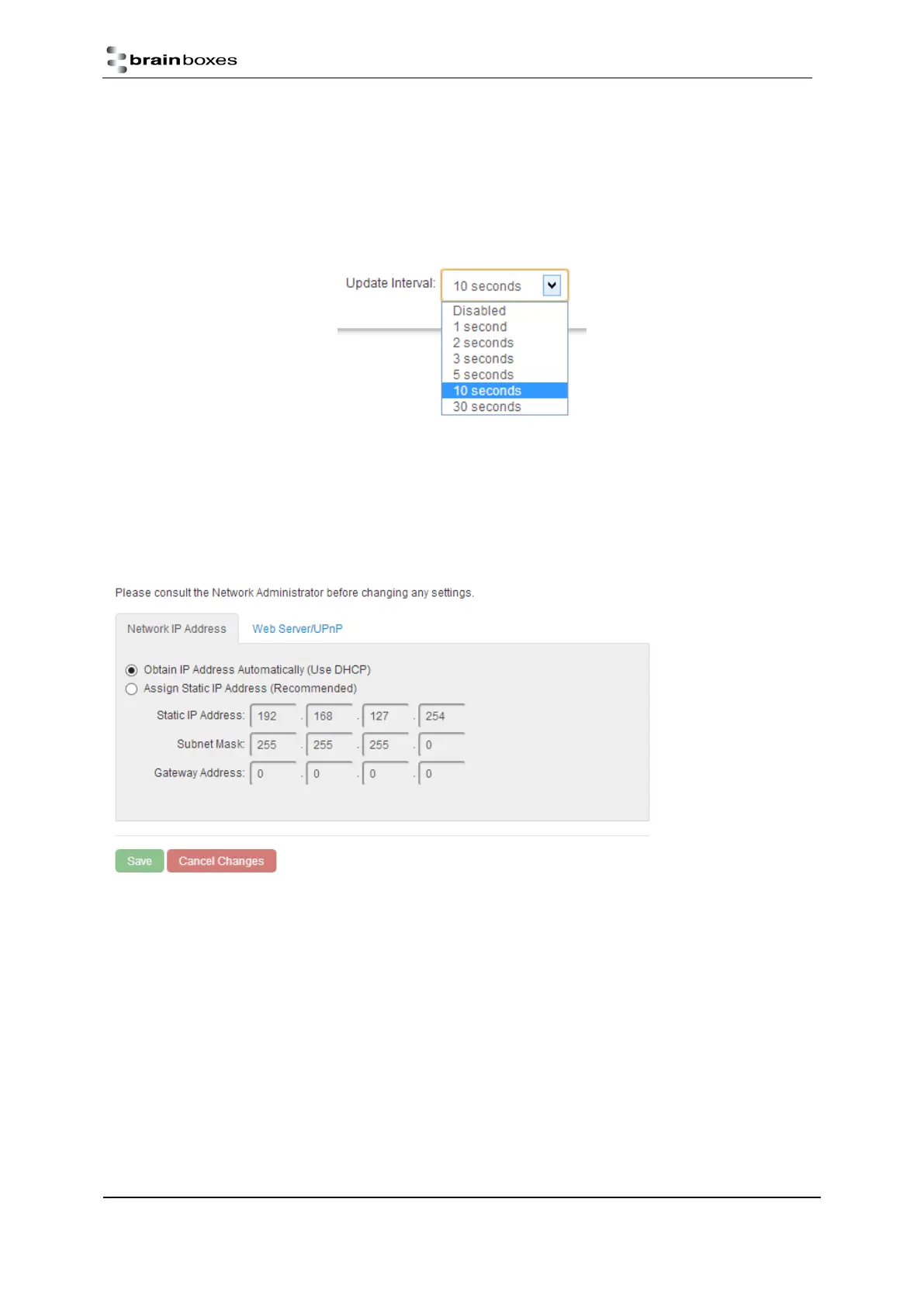 pages every 5 seconds. If set to ‘Disabled’, the web page will not update these settings and you will have to