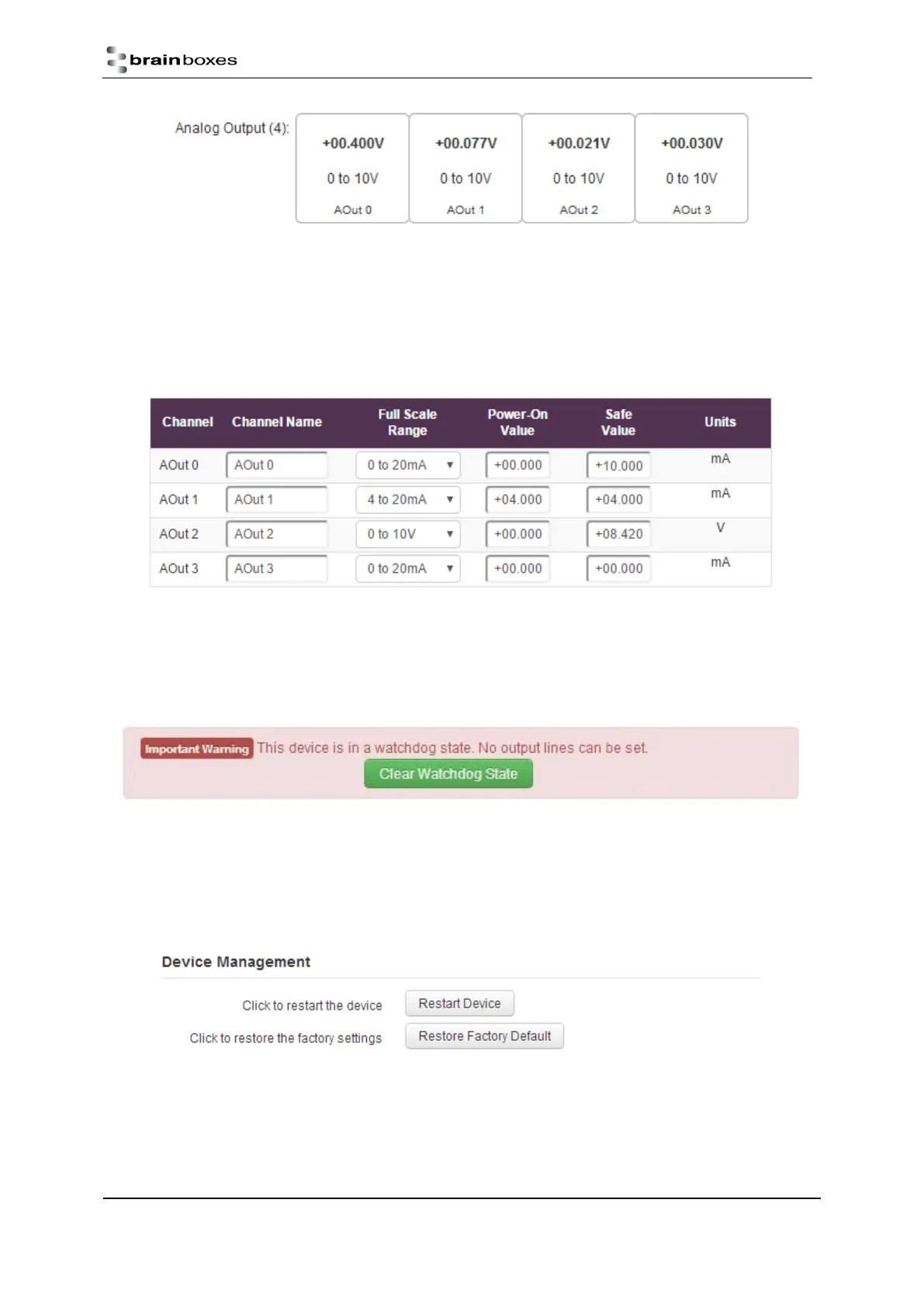 If the device is in the Watchdog state there will be a message at the top of every configuration page warning