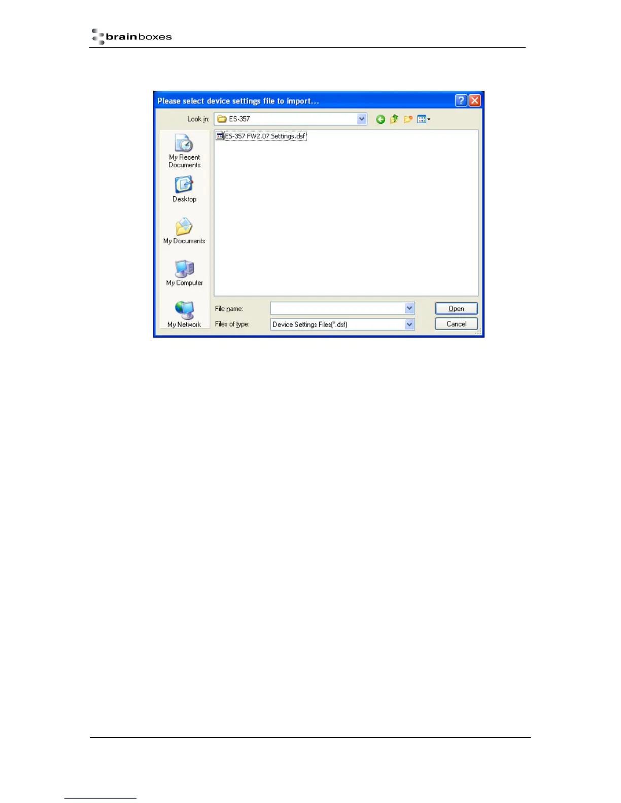 5) Browse to the location where you saved the settings file.