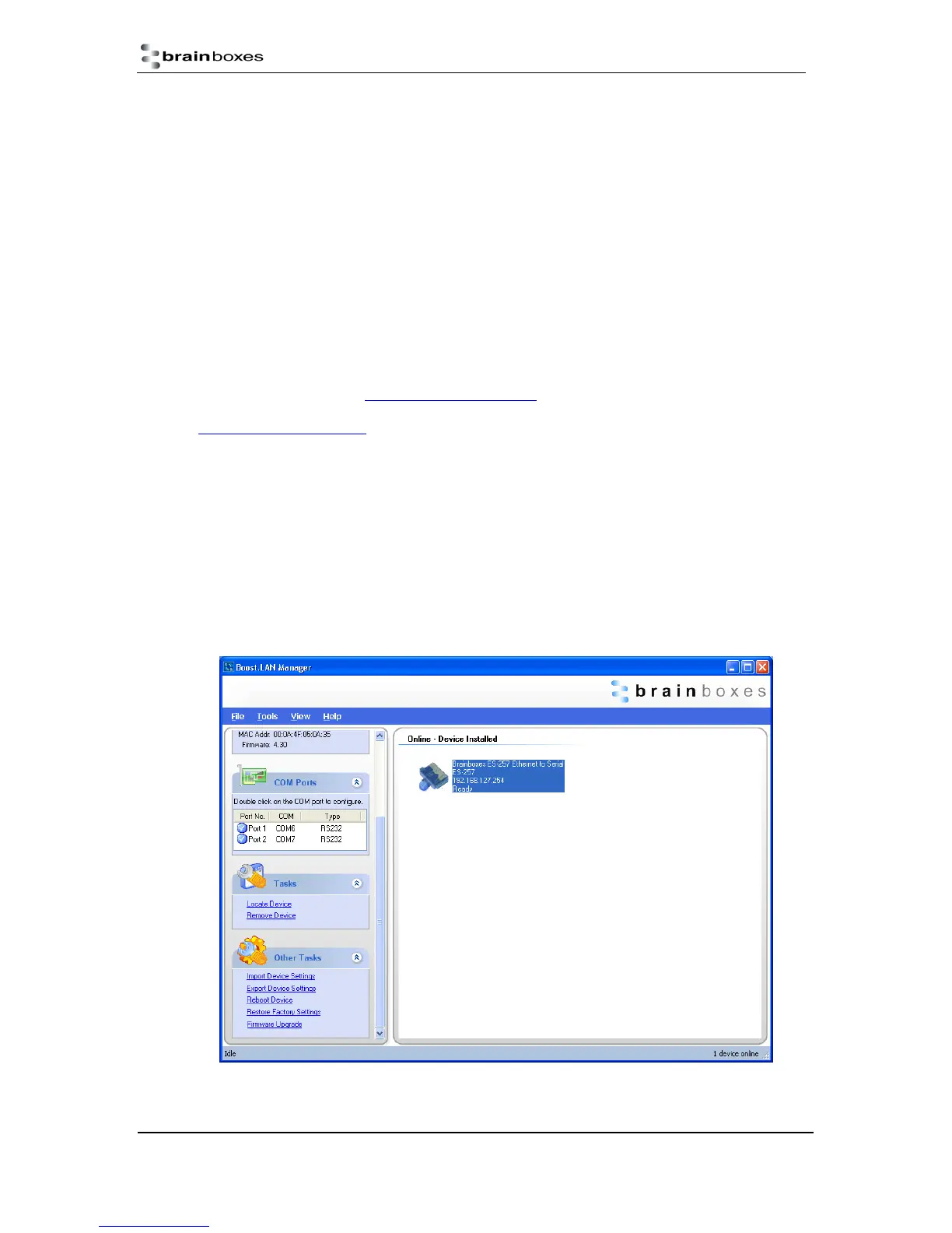 your device. Alternatively, contact Brainboxes Technical Support via