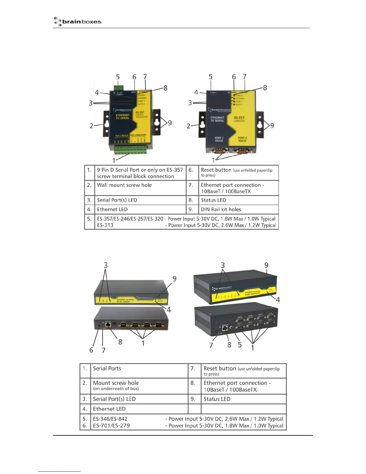 Brainboxes ES-357 - 3 Hardware Features; ES Hardware - 1 & 2 Port Devices; ES Hardware - 4 & 8 Port Devices