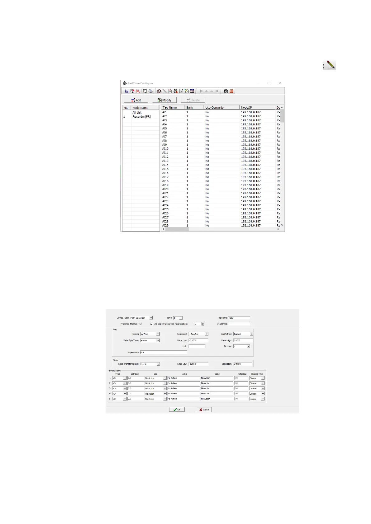 software. The configured tags channels can be viewed by selecting the channel configuration icon in