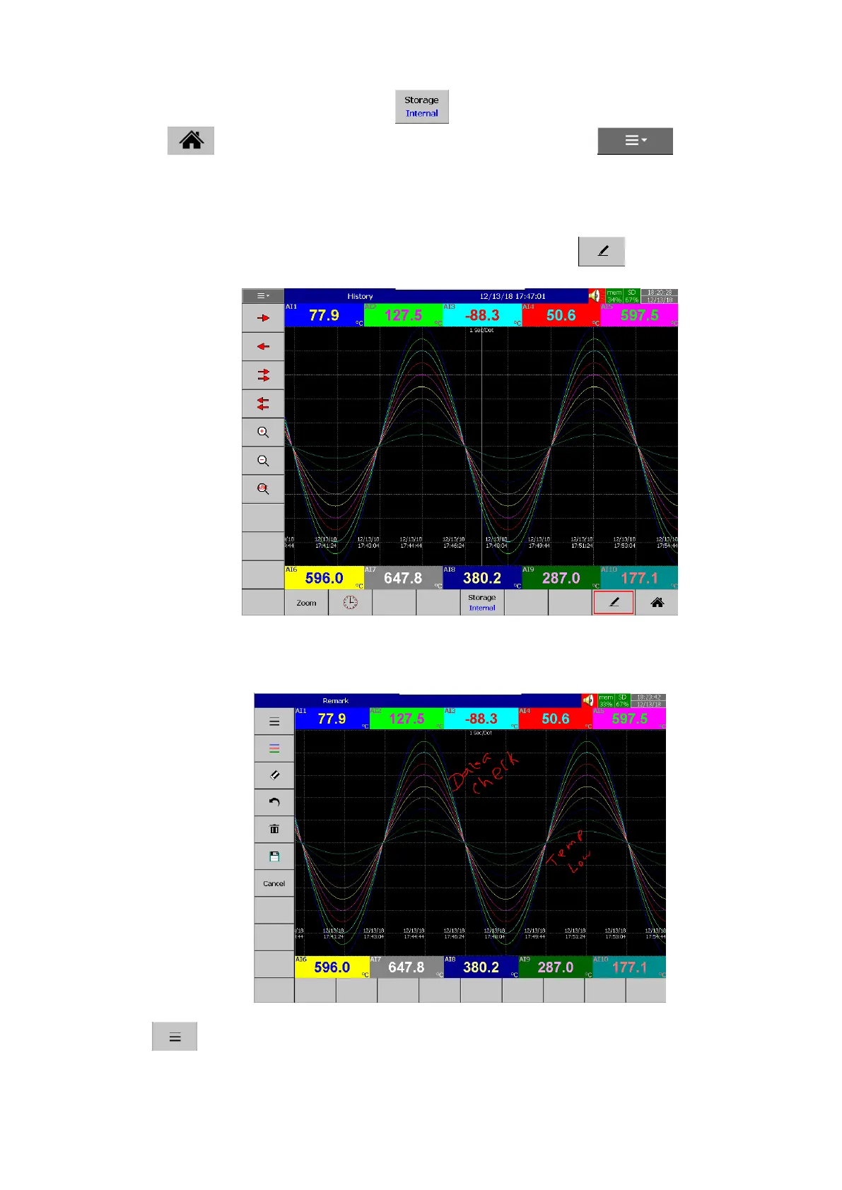 important events. The User can write handwritten messages using a stylus on Historical Trend screens.