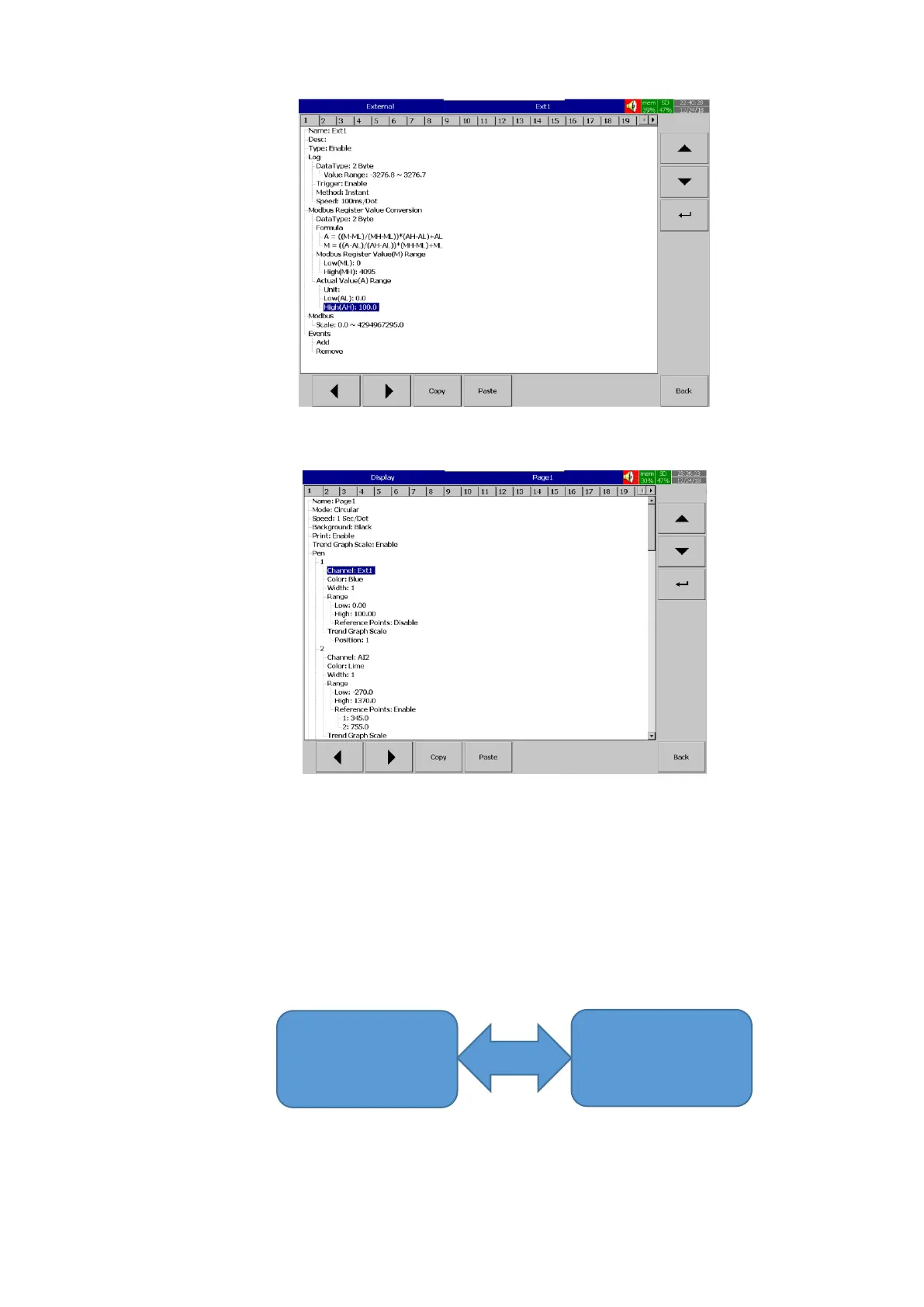 Paperless recorder connected with temperature controller with slave address 2 via RS485