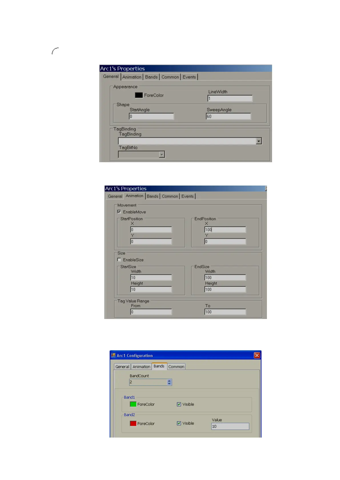 Arc: Used to draw an Arc and do animation during Run time when linked with a Tag.