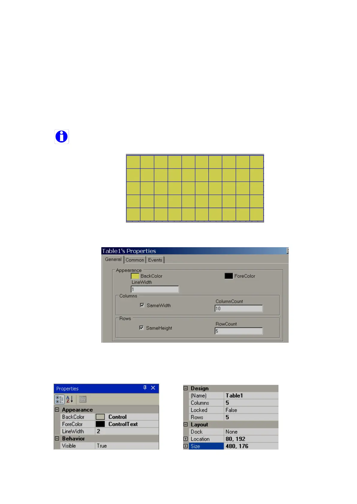 rows/columns will have an equal width and height. It is possible to place labels on rows (Linked with Tags)