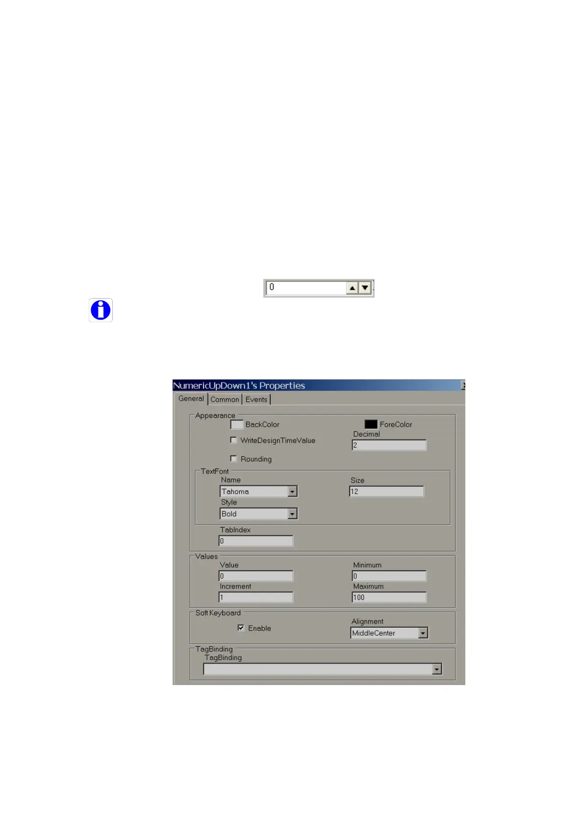 drag/drop of a numeric up/down object to the screen, double click on the object to open GUI dialog.