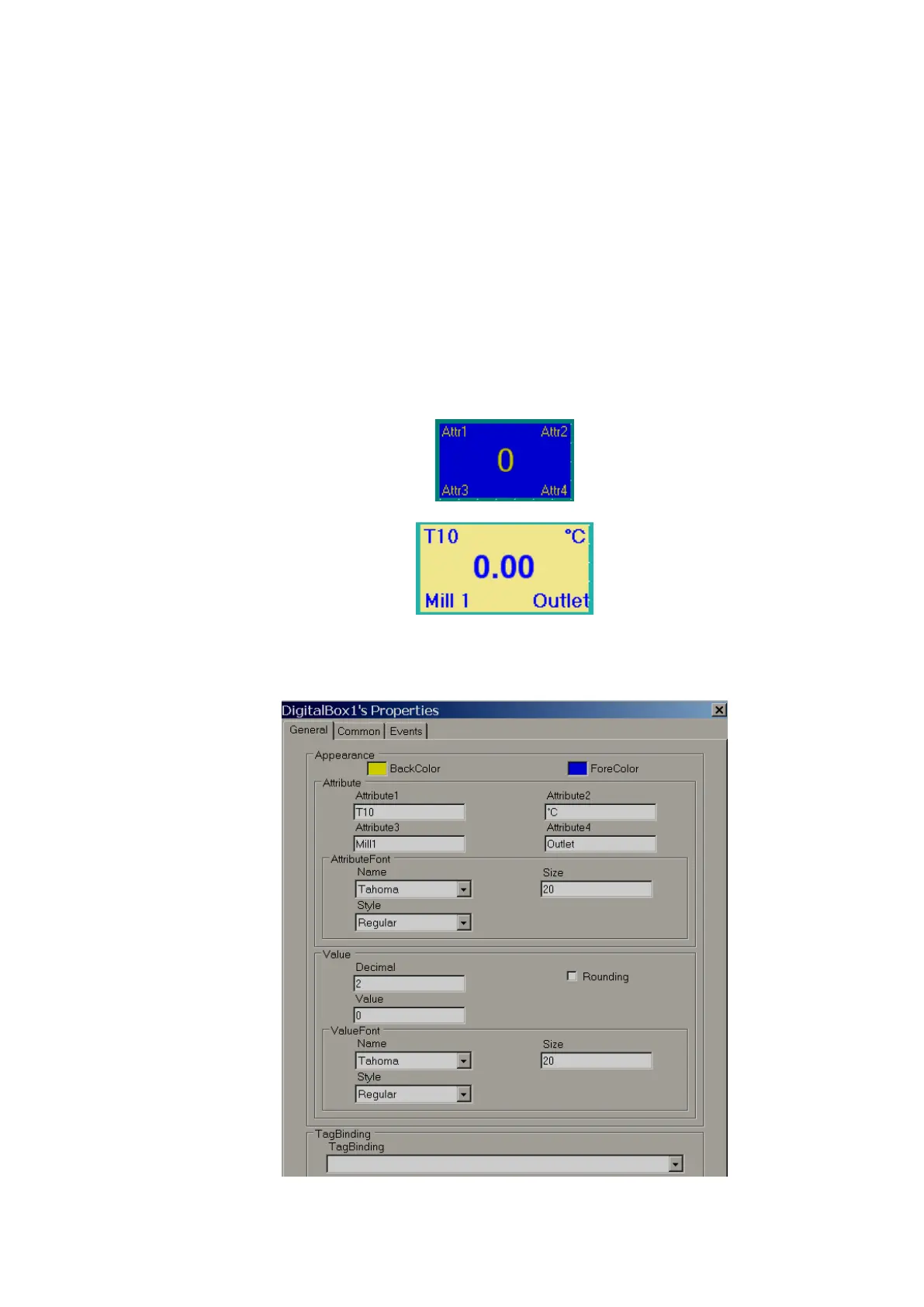 Digital Boxes are normally used with Analog tags to display process values like Temperature,