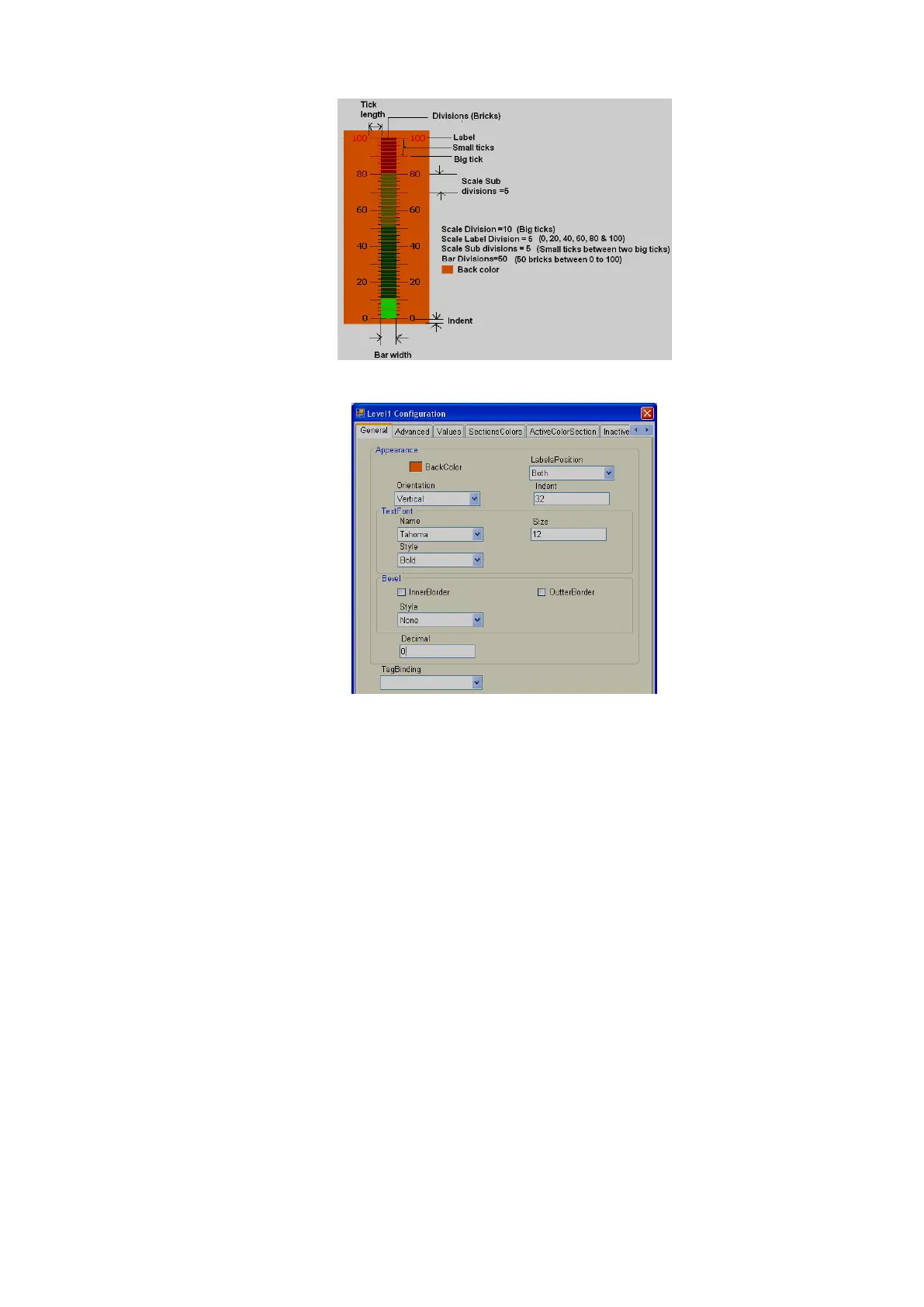 Decimals: Define number of decimals to be displayed for value to be displayed along with level
