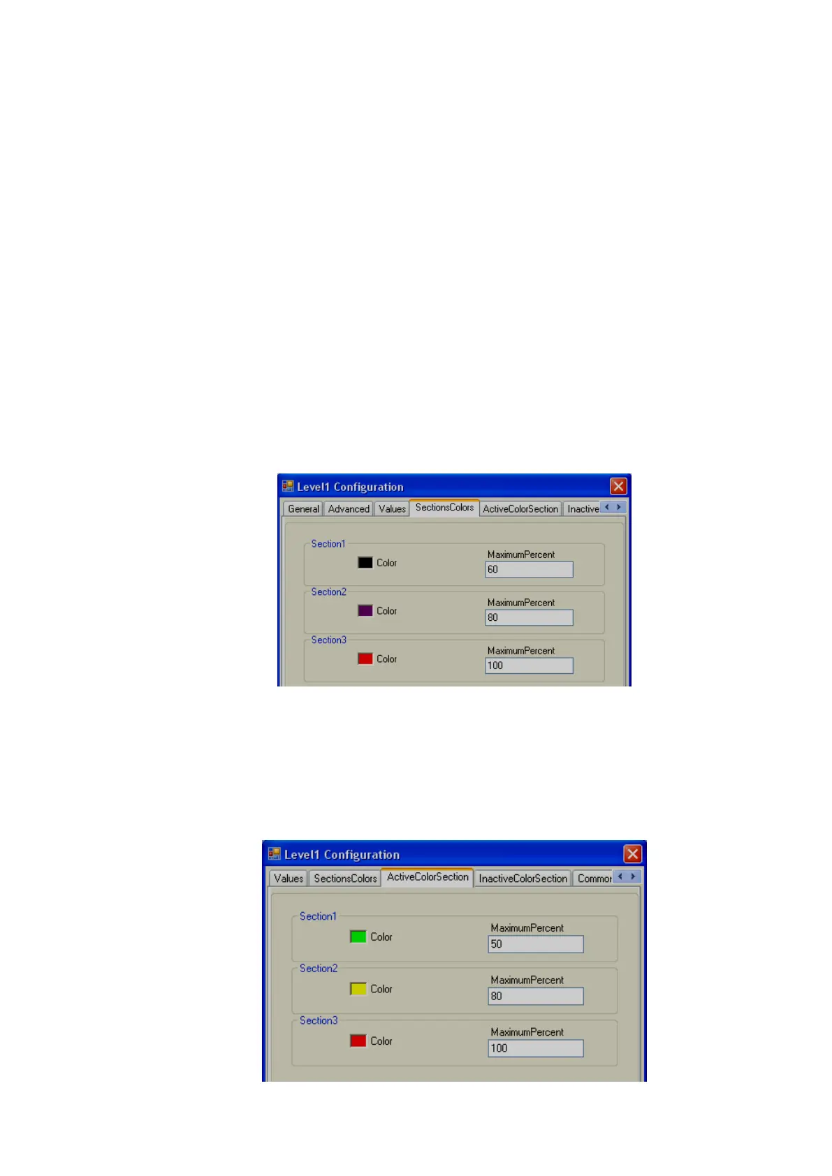 Sections colors: It is configure bands for the sections to show different colors for Labels and
