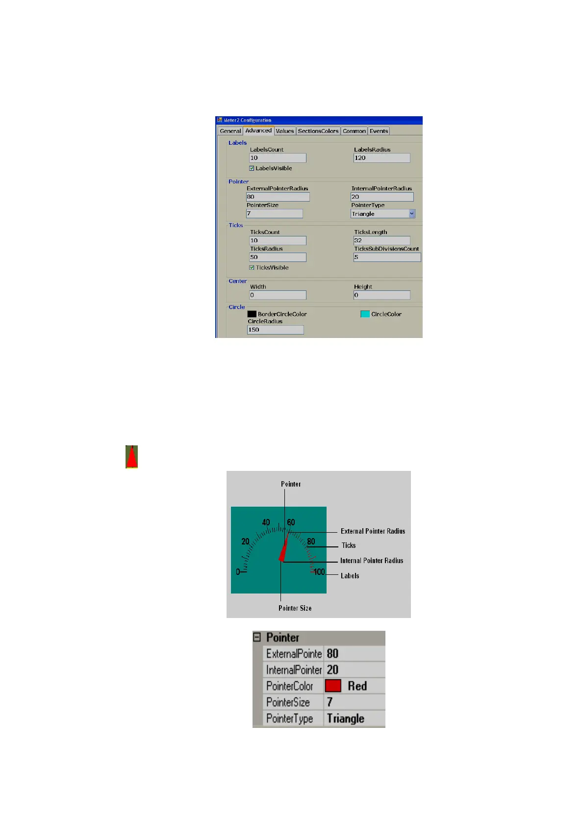 External Pointer Radius: It is used to set external pointer Radius, define end position.