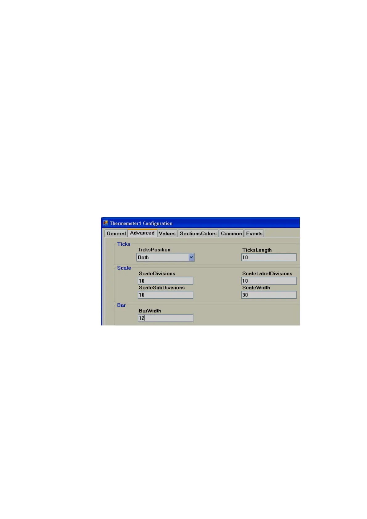 Scale divisions: Define number of scale divisions (Big Ticks) for the component.