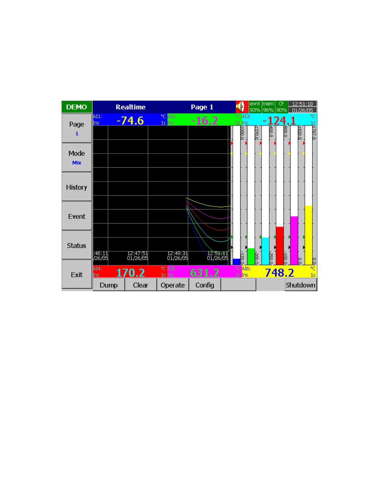 the user may find another five soft keys Dump, Clear, Operate, Config and Shutdown. These eleven soft