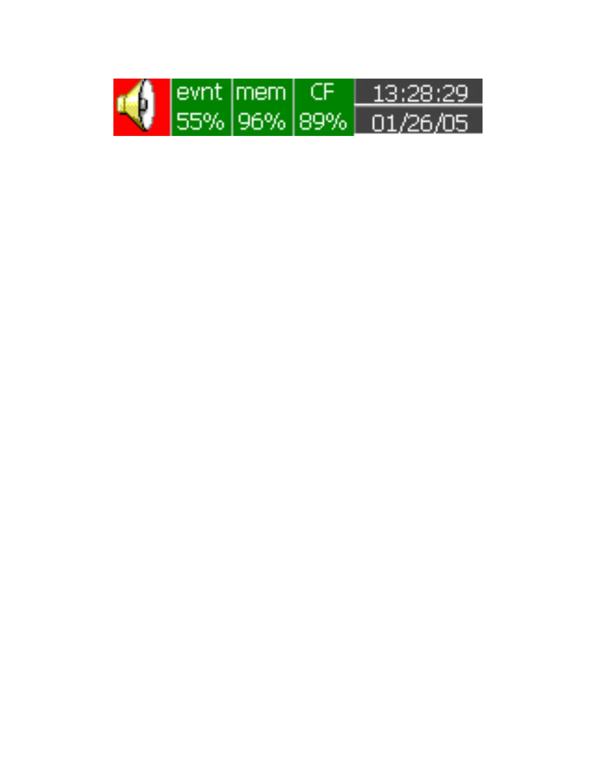 Evnt: The percentage of memory space left for events/alarms. For example, evnt 84% means 84% space