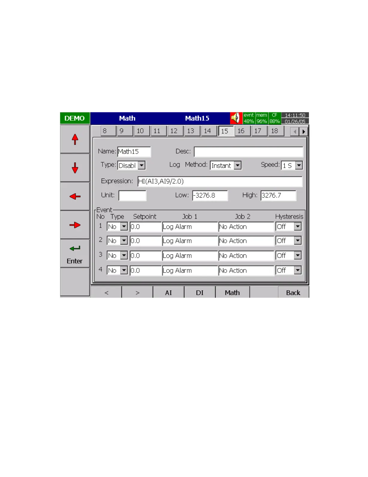 Analog input above. Define the name, Description, and select Type, Log Method, Log Speed, Unit, Scale