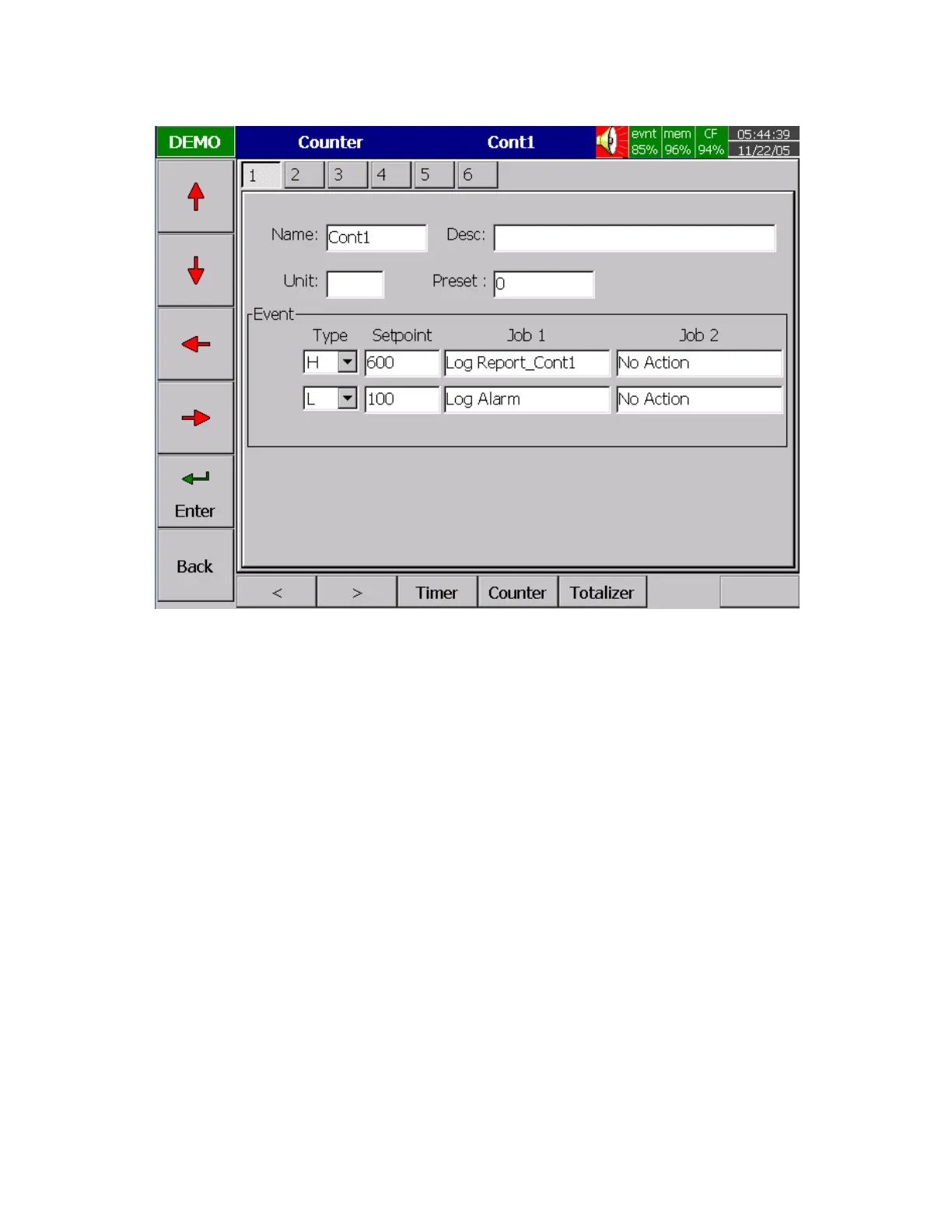 Setpoint: Defines the set point of process value to trigger the counter.