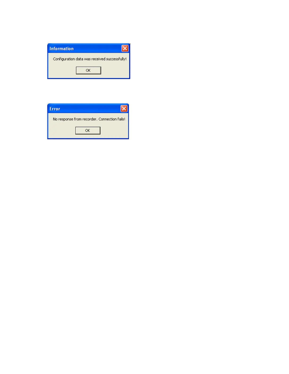 If Upload is unsuccessful, it shown message as “No response from Recorder, connection fails”.