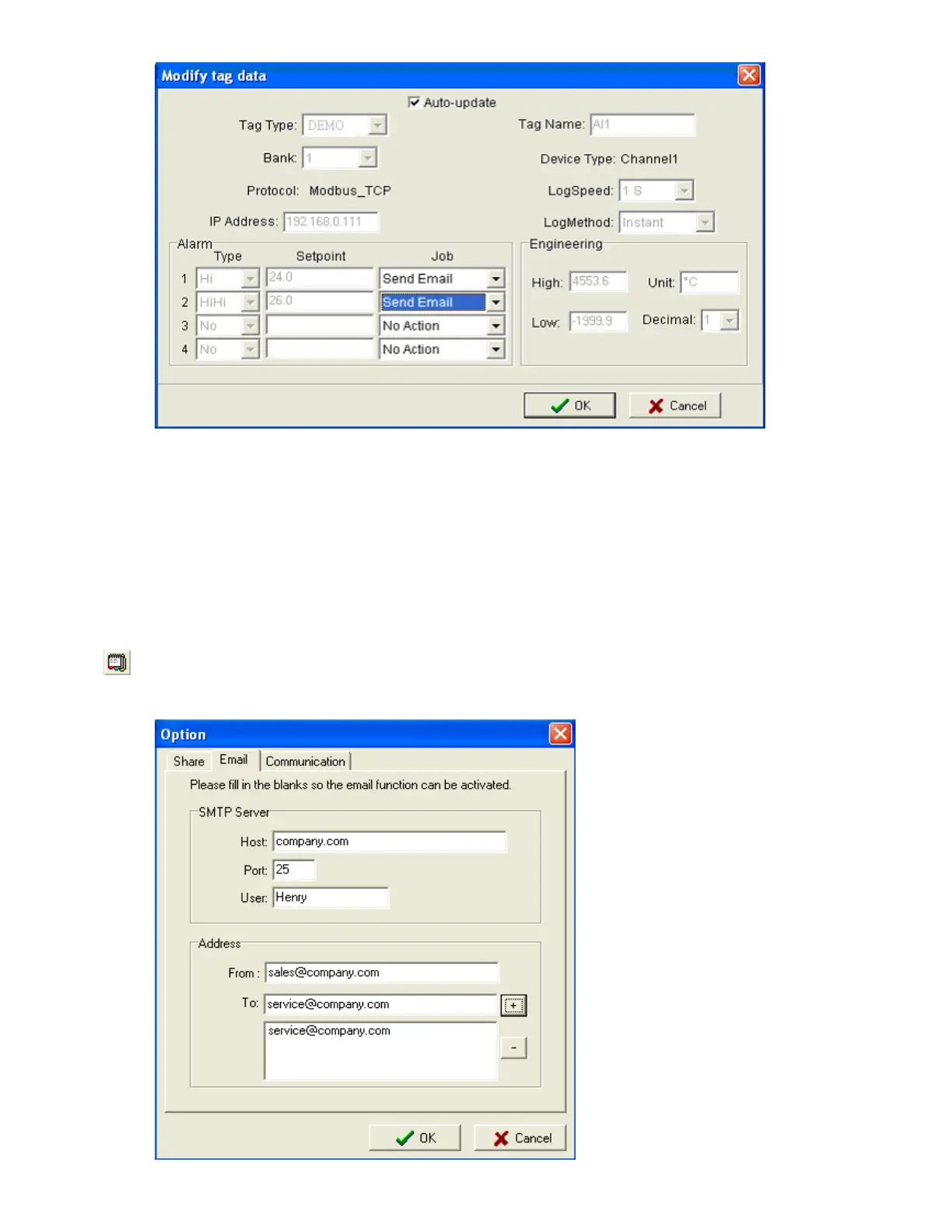 email configuration and real time log speed.