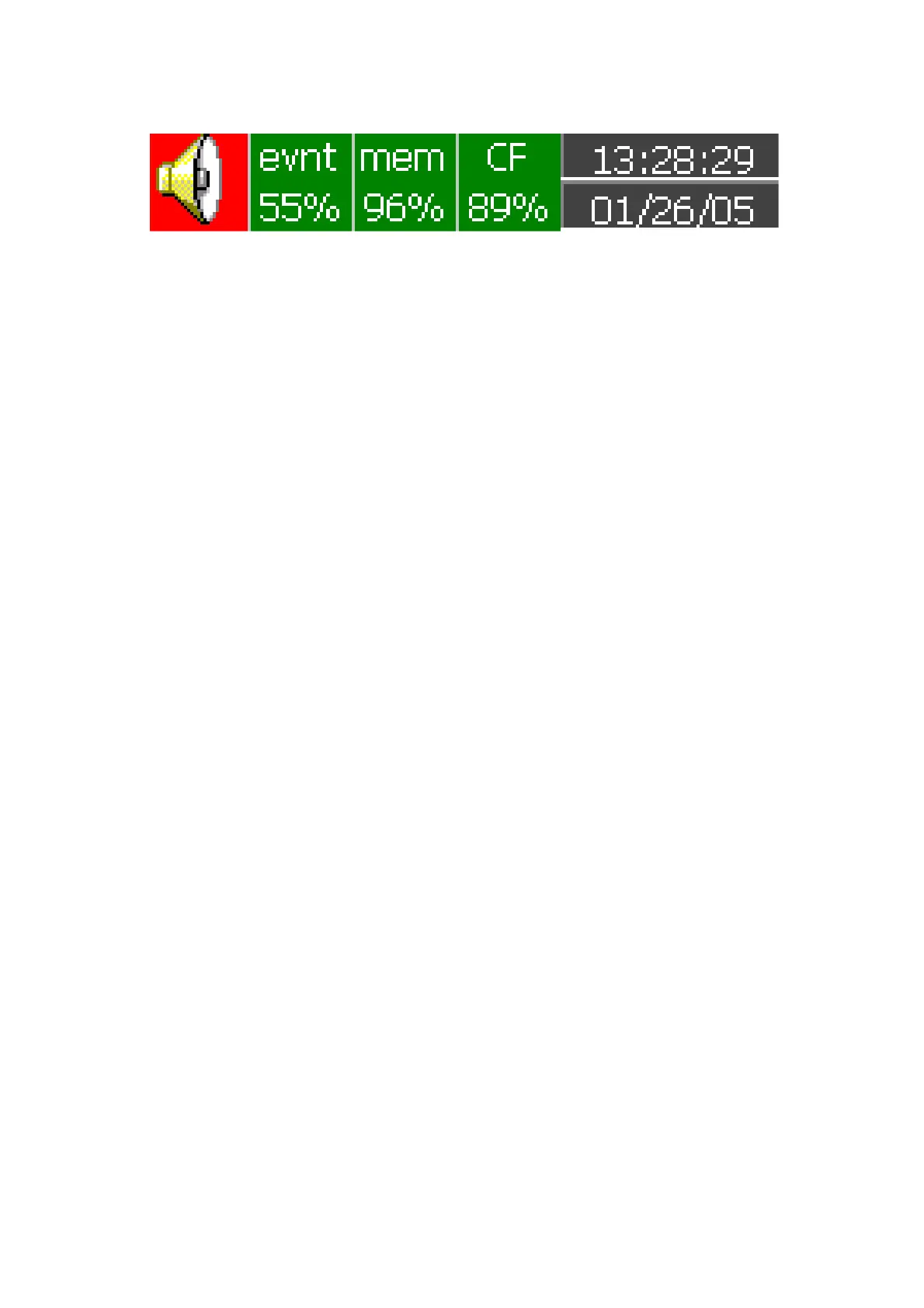 Evnt: The percentage of memory space left for events/alarms. For example, evnt 84% means 84% space