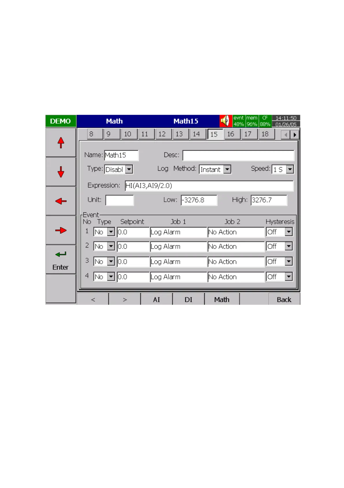 Analog input above. Define the name, Description, and select Type, Log Method, Log Speed, Unit, Scale