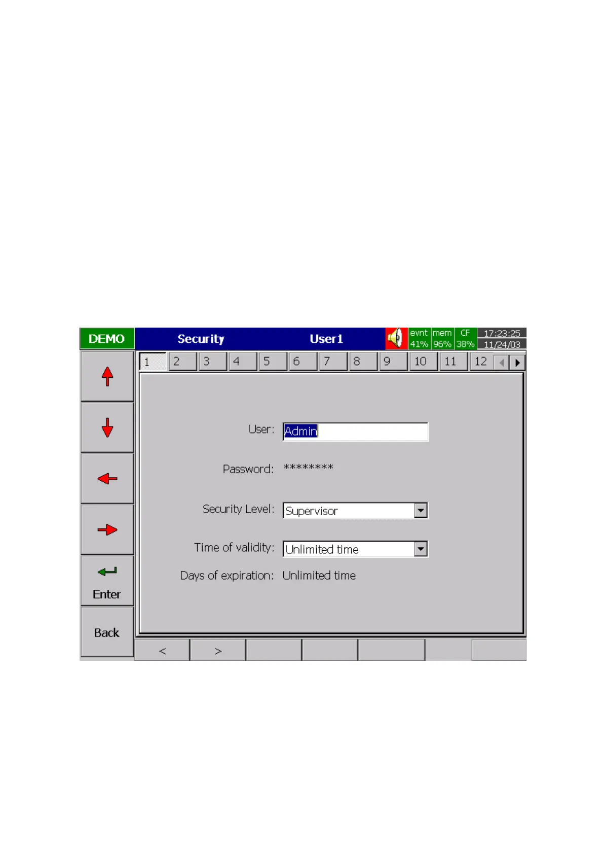 Operator: He can access vertical keys to view the historical data, events and status but no authority to