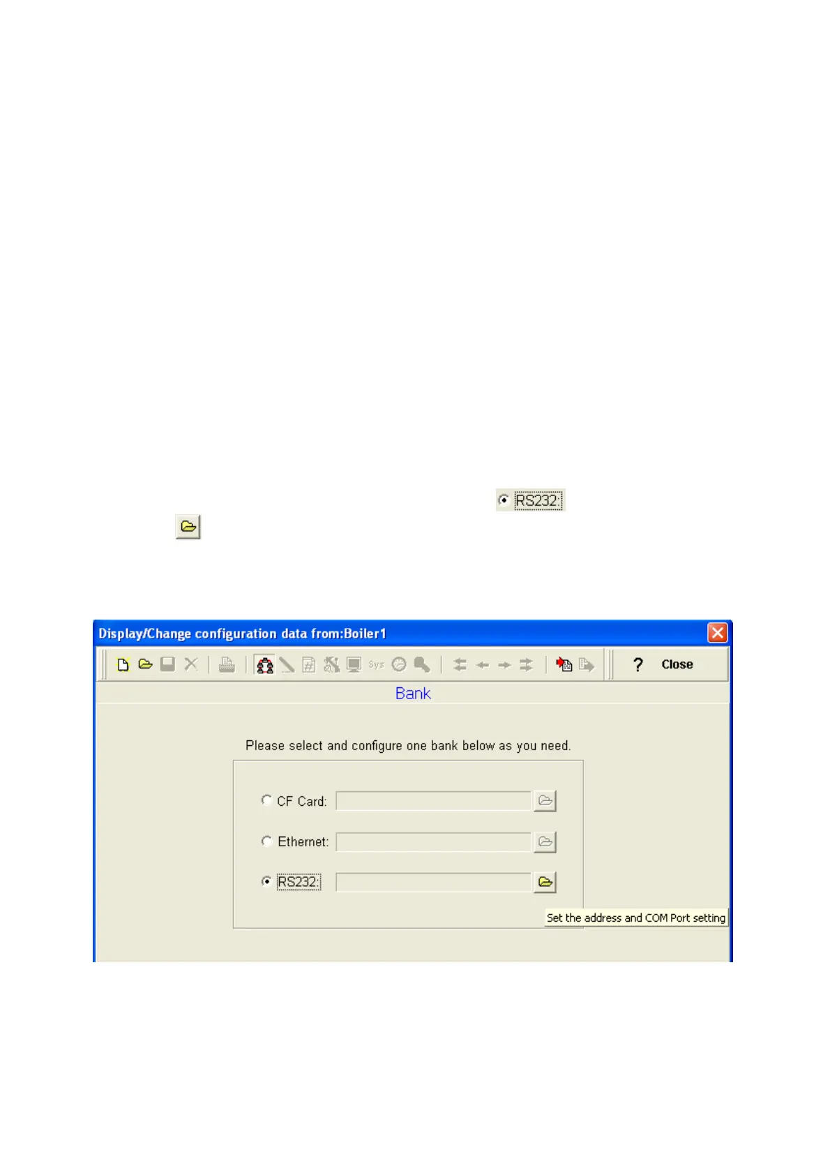 6. Select RS 232 in the bank as below through radial button