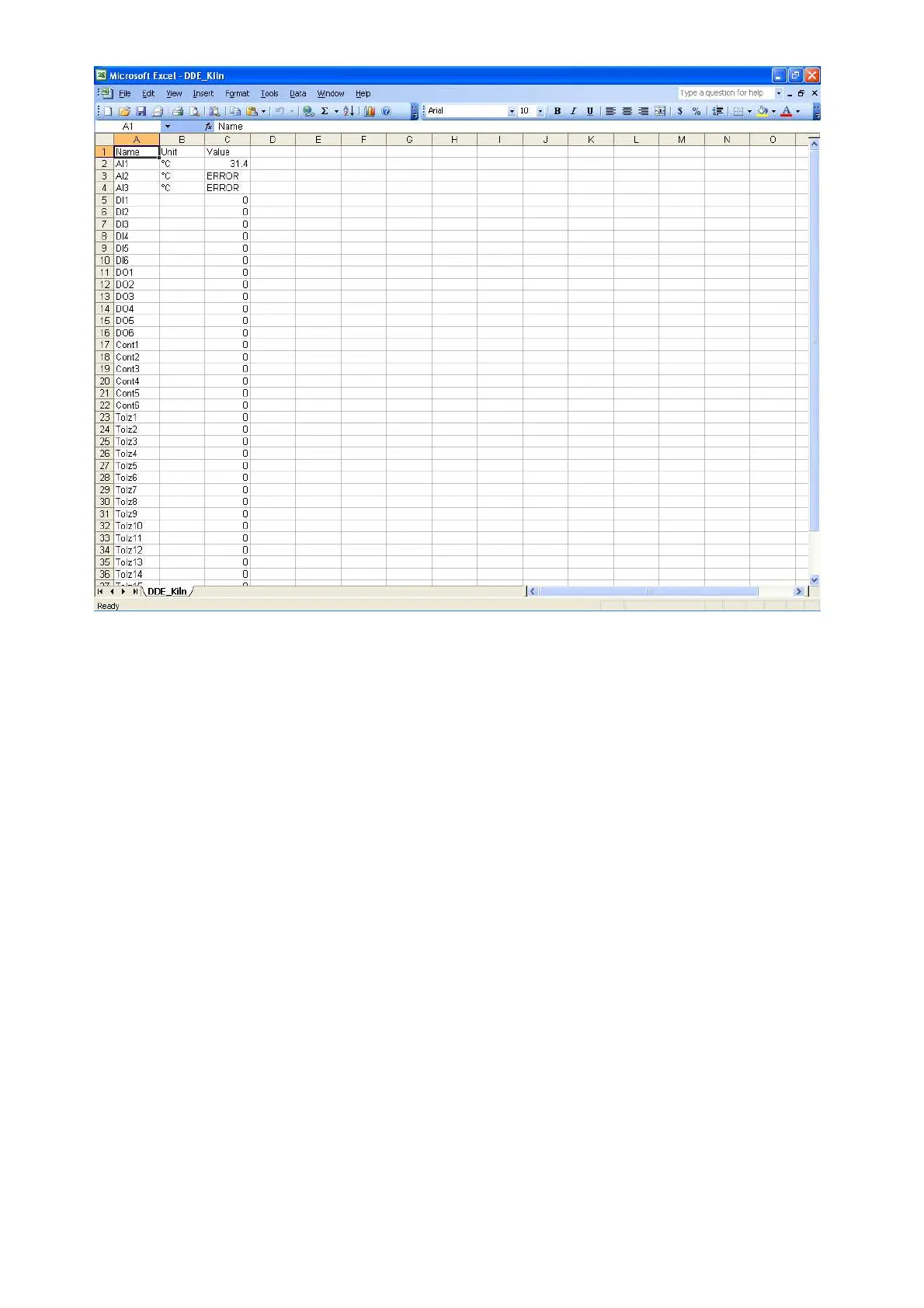 If any “NAME” text appears in the Excel file, it indicates that particular tag is not configured properly.