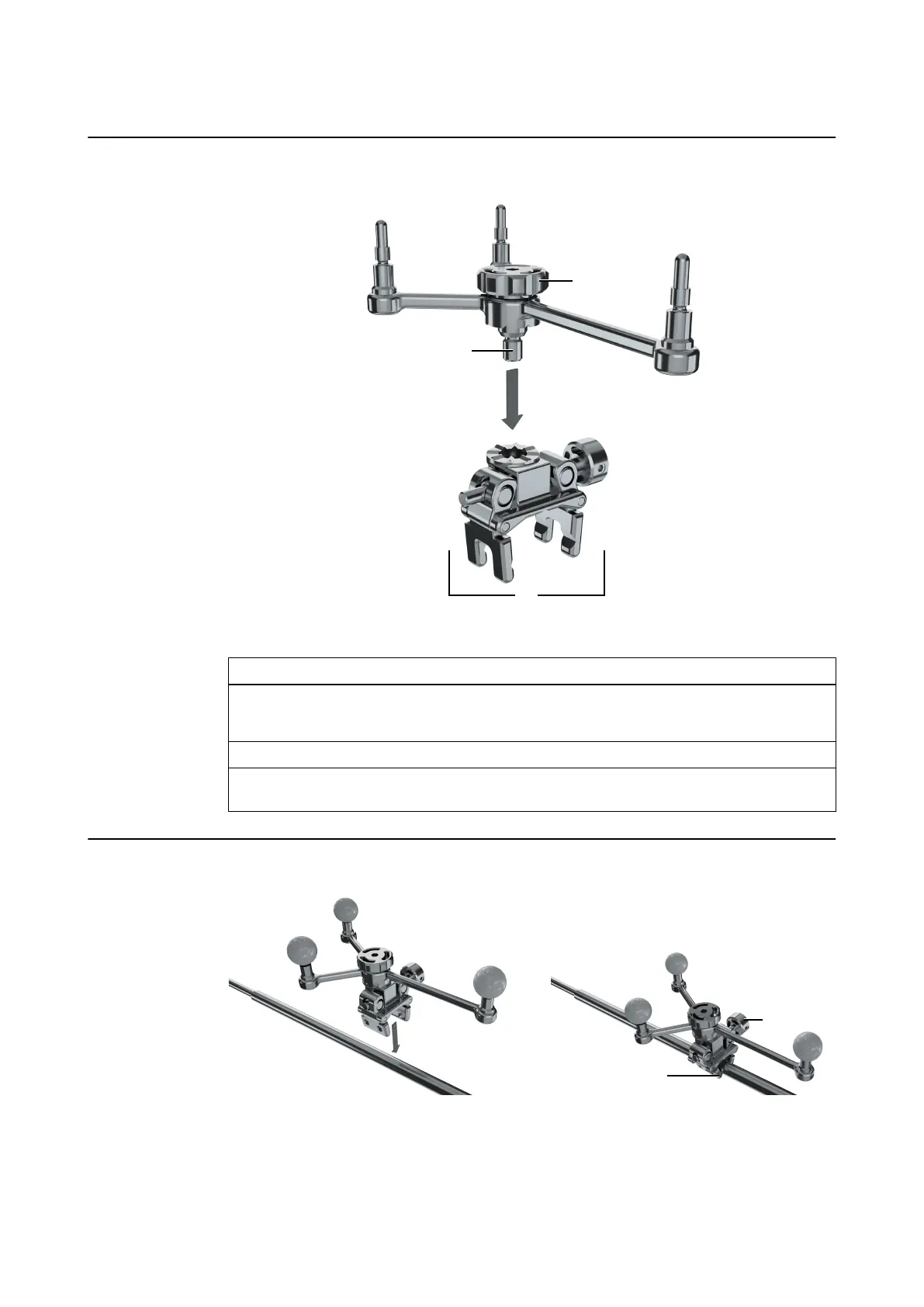 2. Insert the array stem ② into the clamp ① and align the teeth on both components.