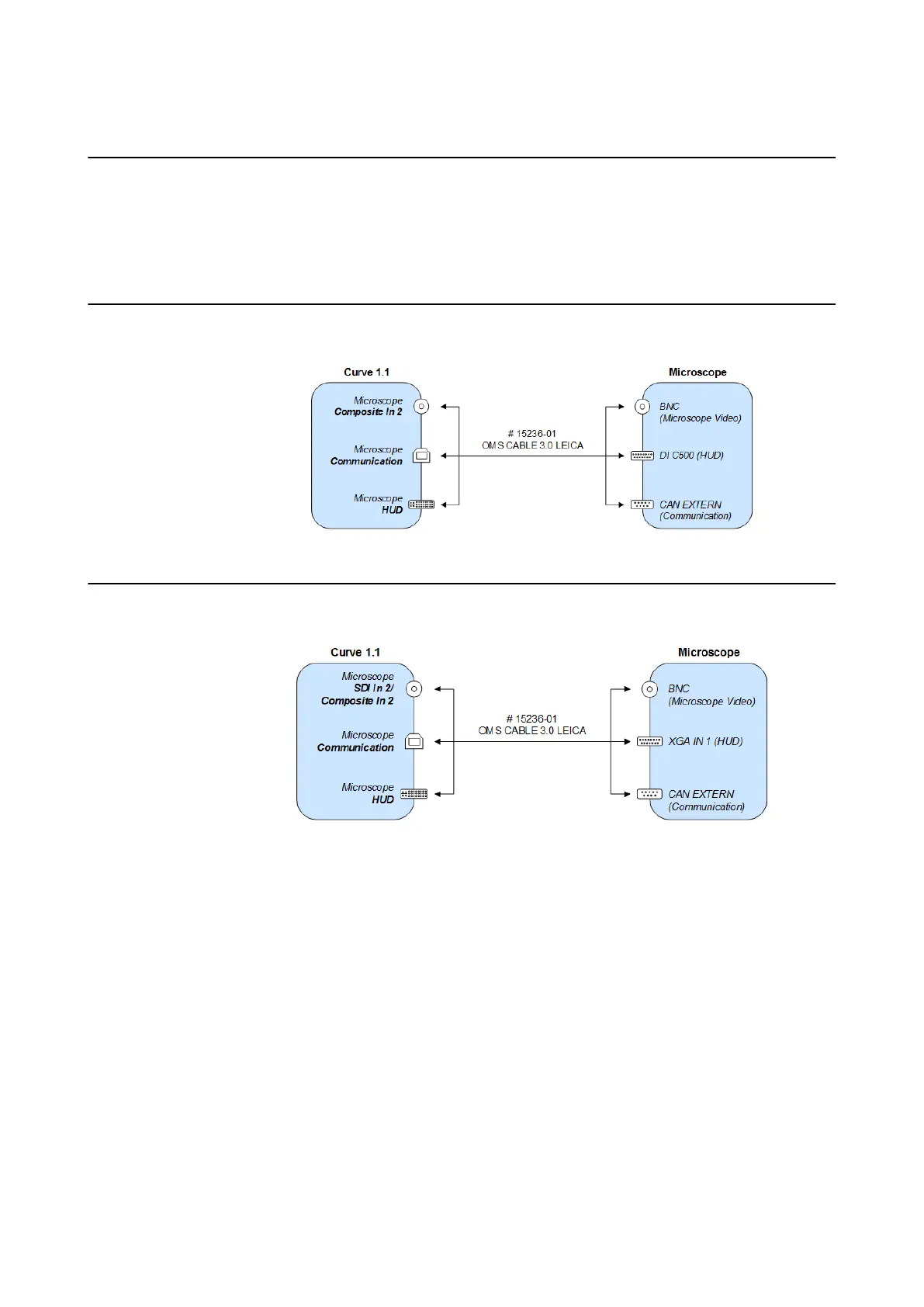 Connect the supplied cables between the microscope ports and the corresponding ports on the