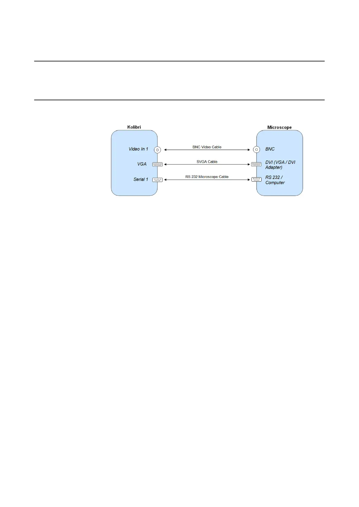 Connect the supplied cables between the microscope ports and the corresponding ports on the