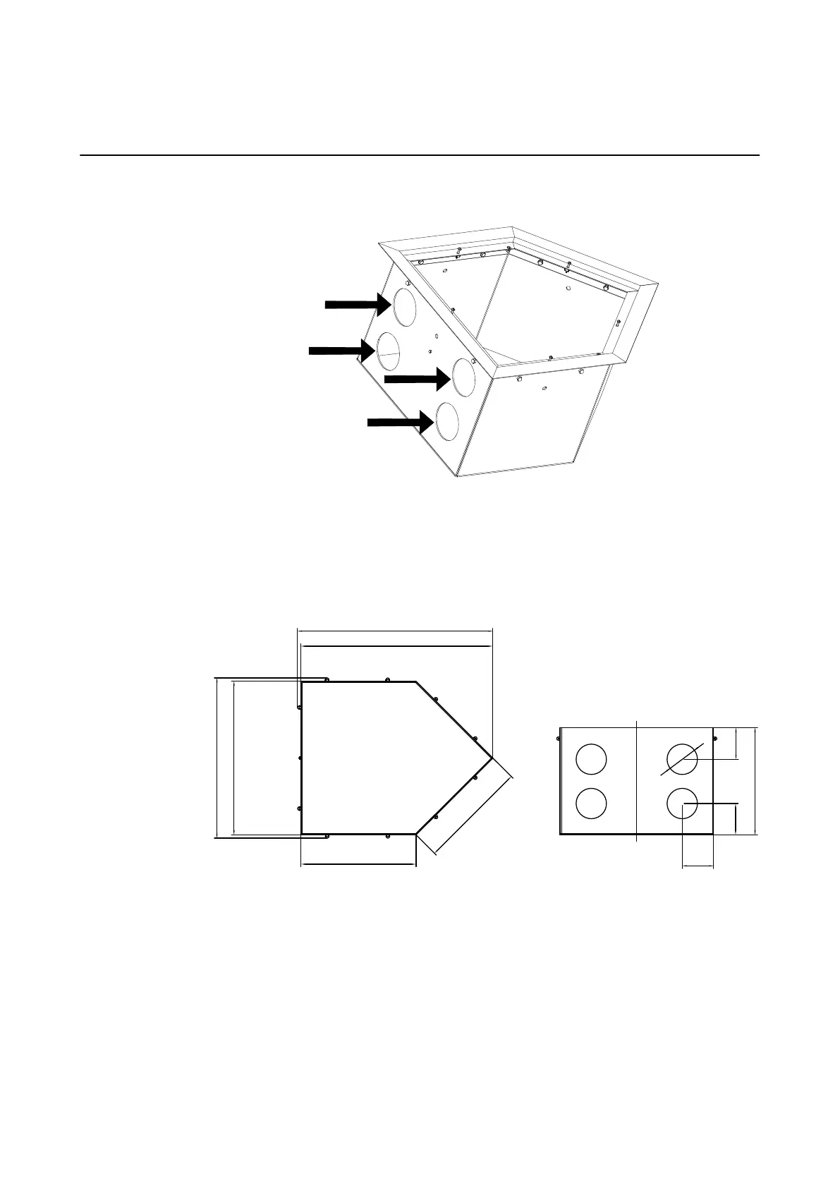 The following image shows a top and back view (without leveling feet) of the 17” floor box for X-