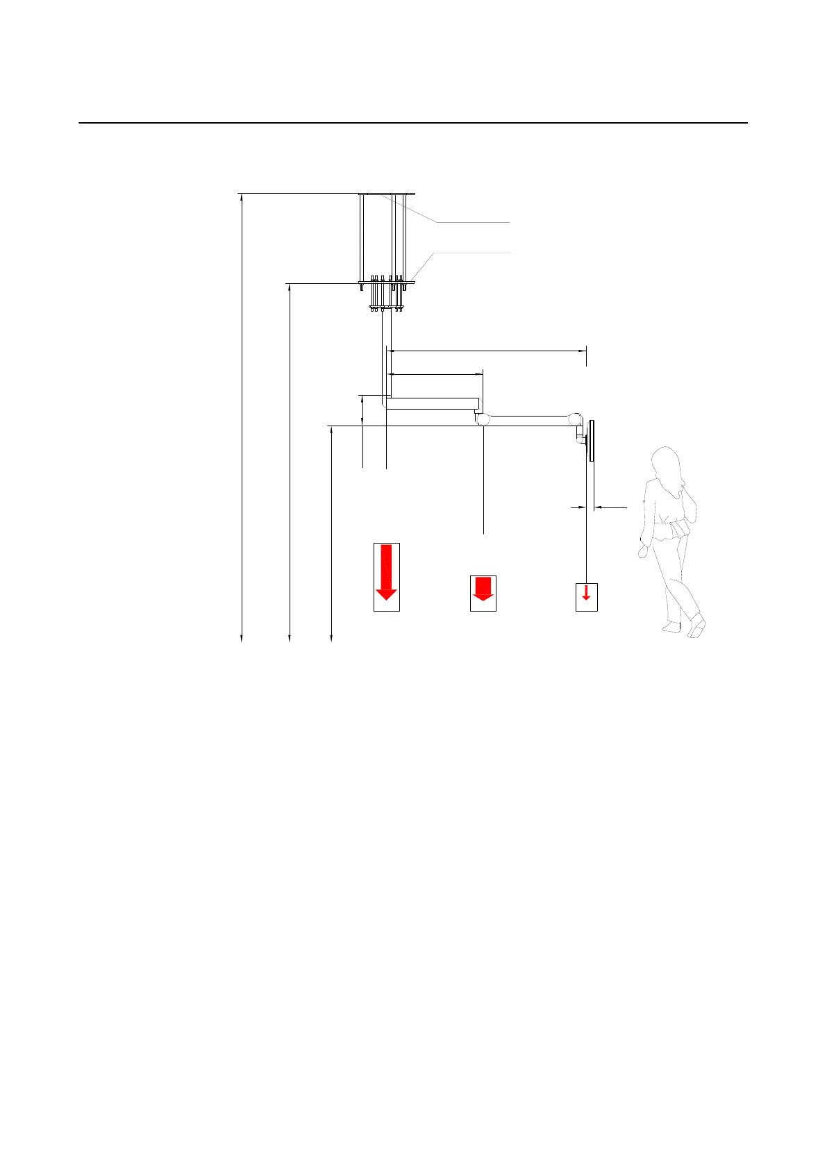 The following image shows the dimensions and weight for the ceiling arm in a setup for a