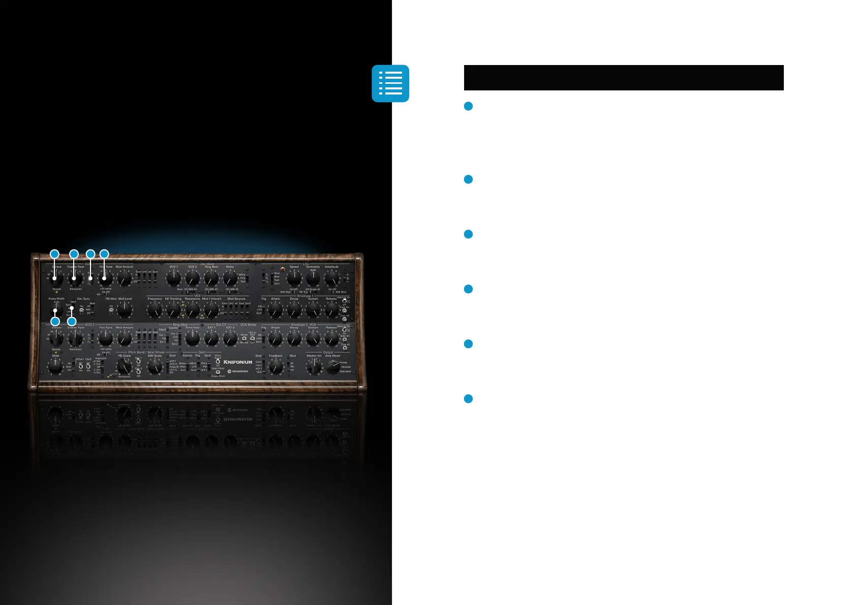 Sets the VCO‘s octave in terms of organ stop. 8‘ equals native pitch, 4‘ = one