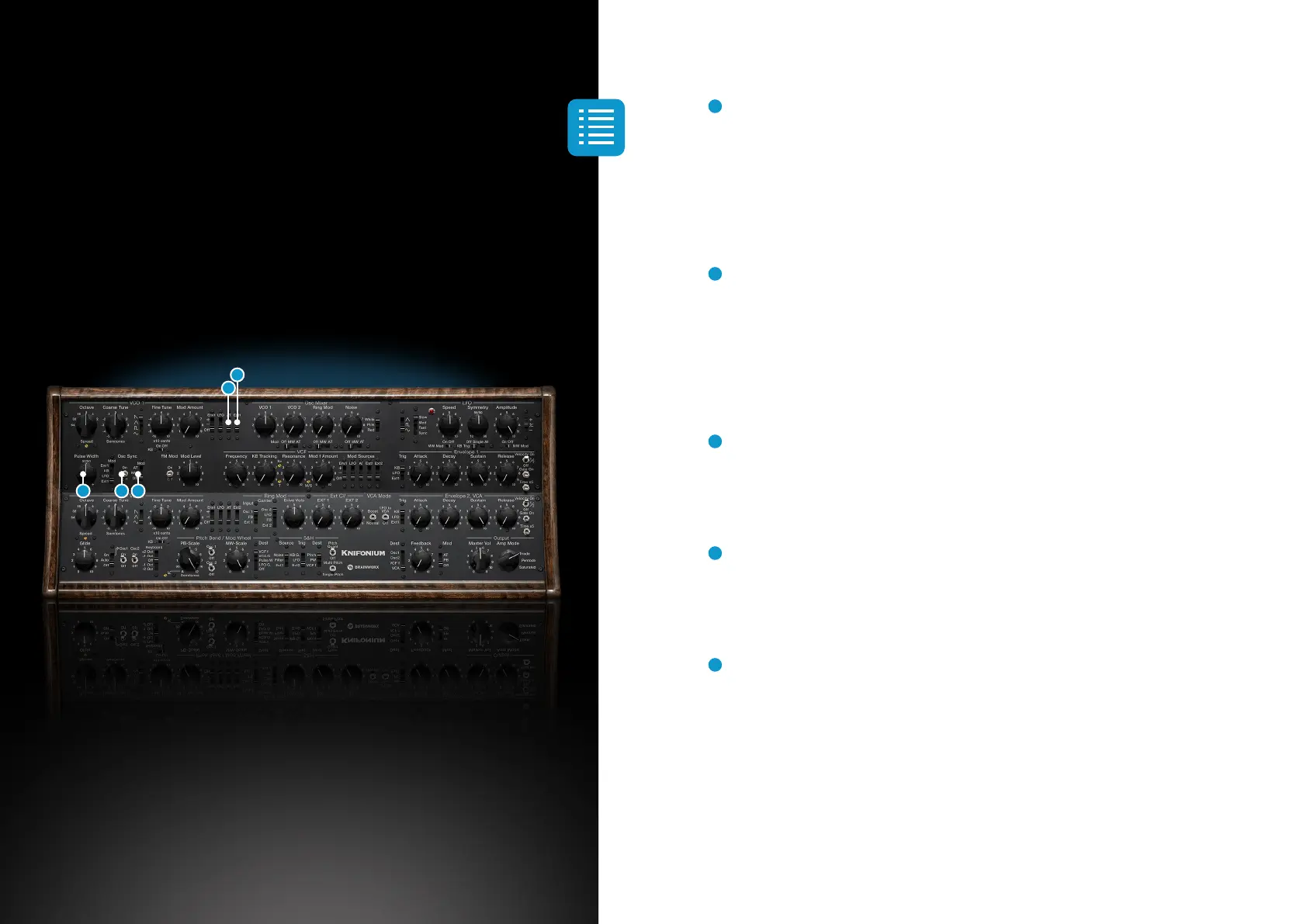 Switches oscillator sync on or off. VCO 2 is the master, VCO 1 is the slave