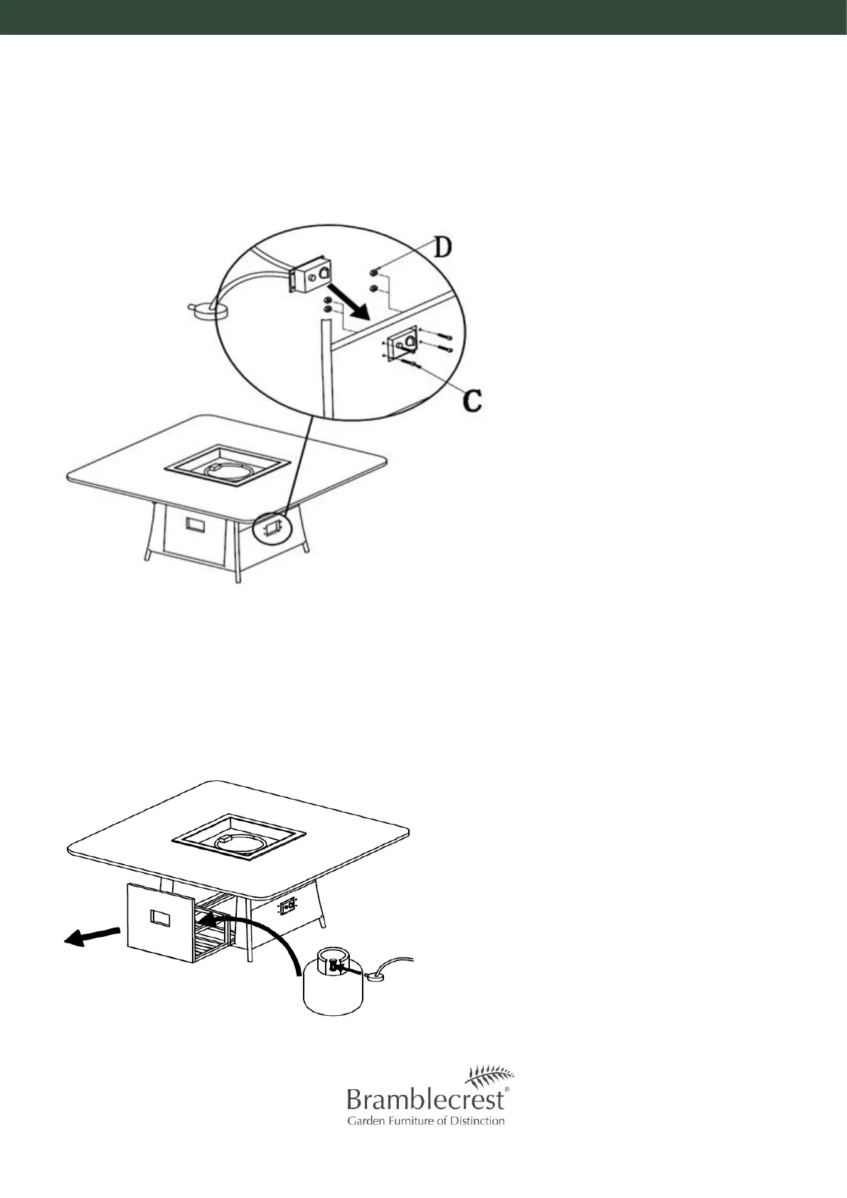 Fasten part ‘D’ to the end of part ‘C’ from inside the table.