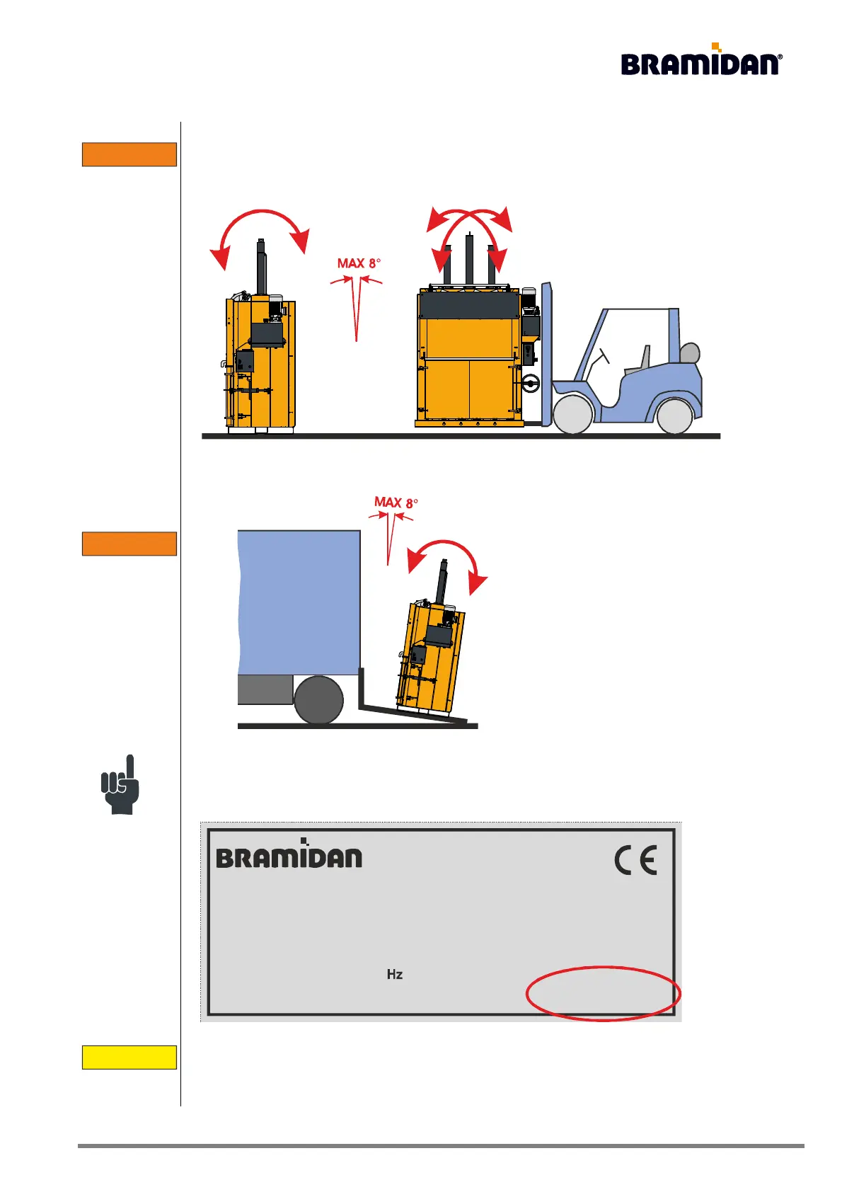 The lifting equipment must be designed for lifting the weight of the baler. The baler's weight