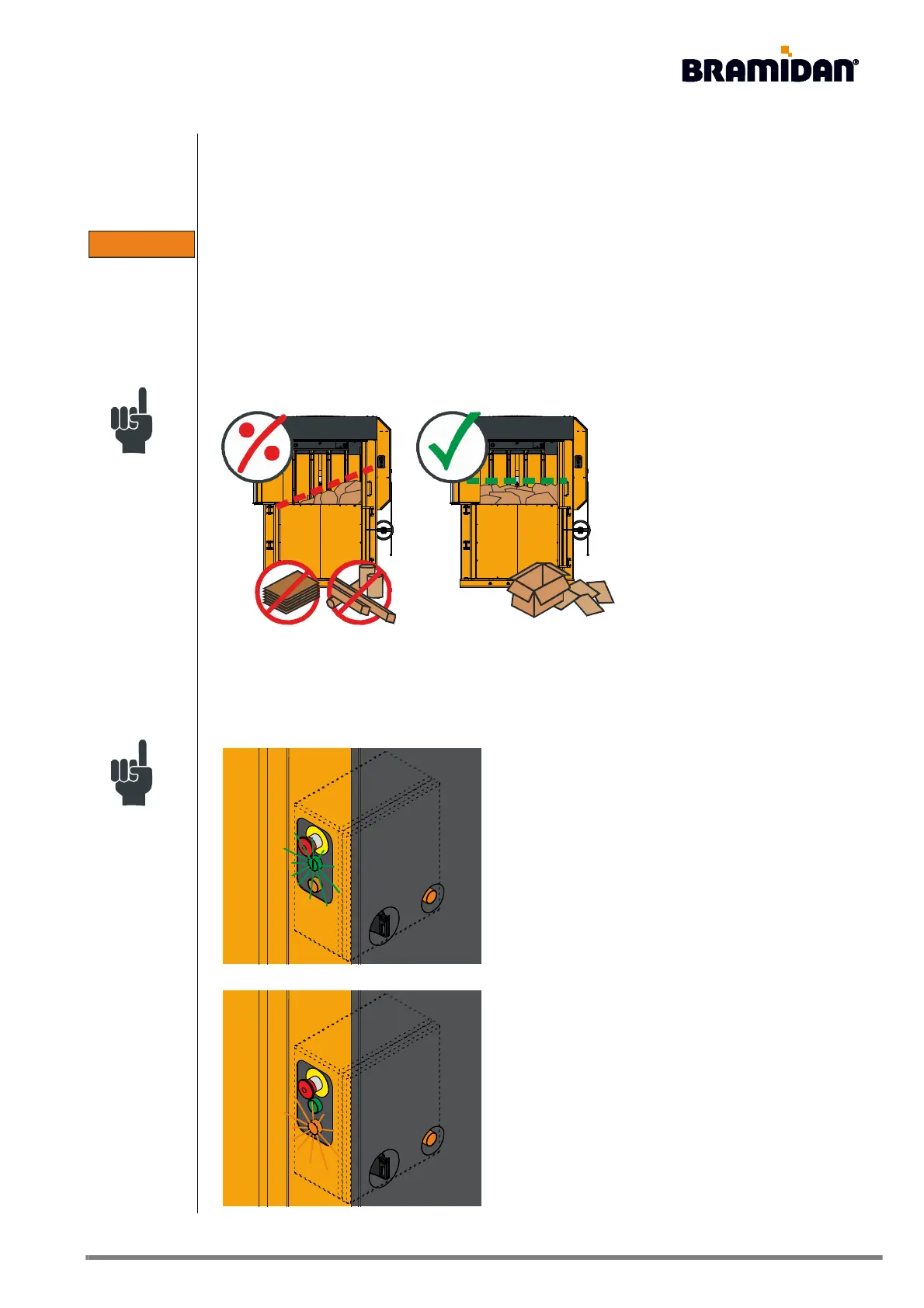 Also bear in mind that small animals may be hiding in waste which has not yet been compressed.