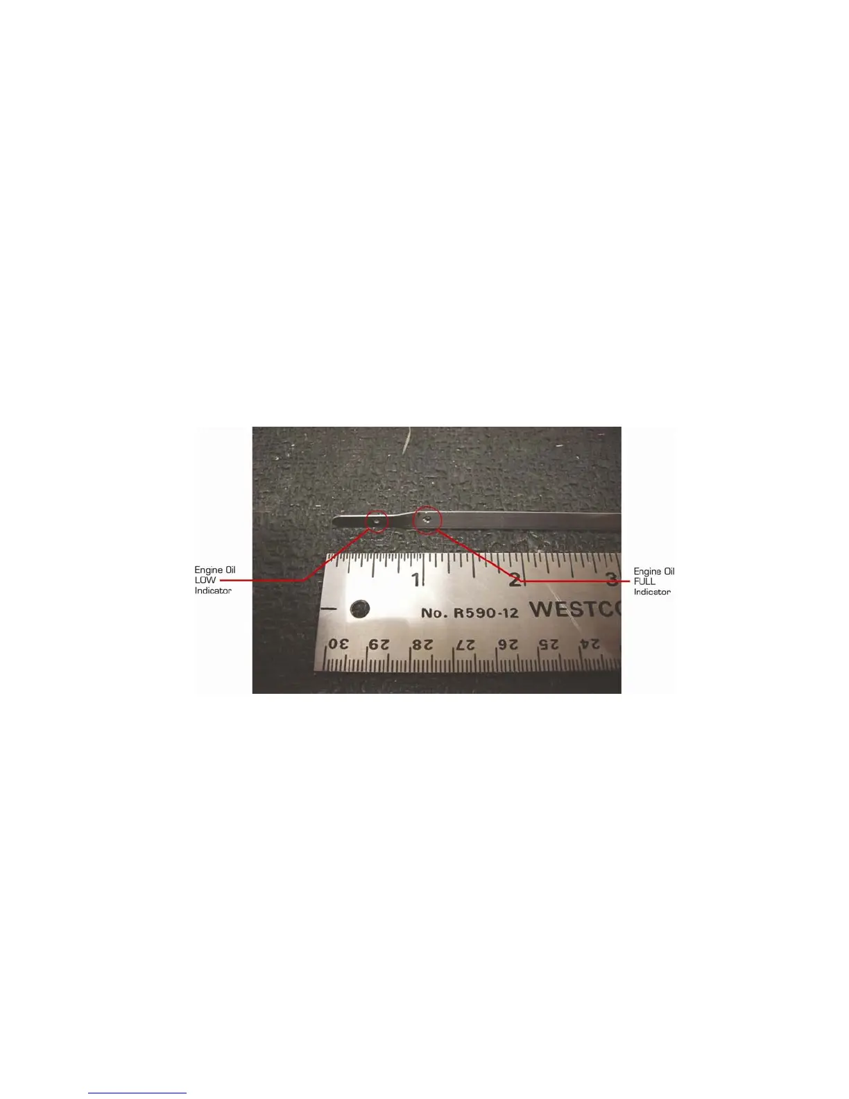 holes drilled in the dip stick at 1/2 in. (12.7 mm) and at 1 in. (25.4 mm) for your point of reference.