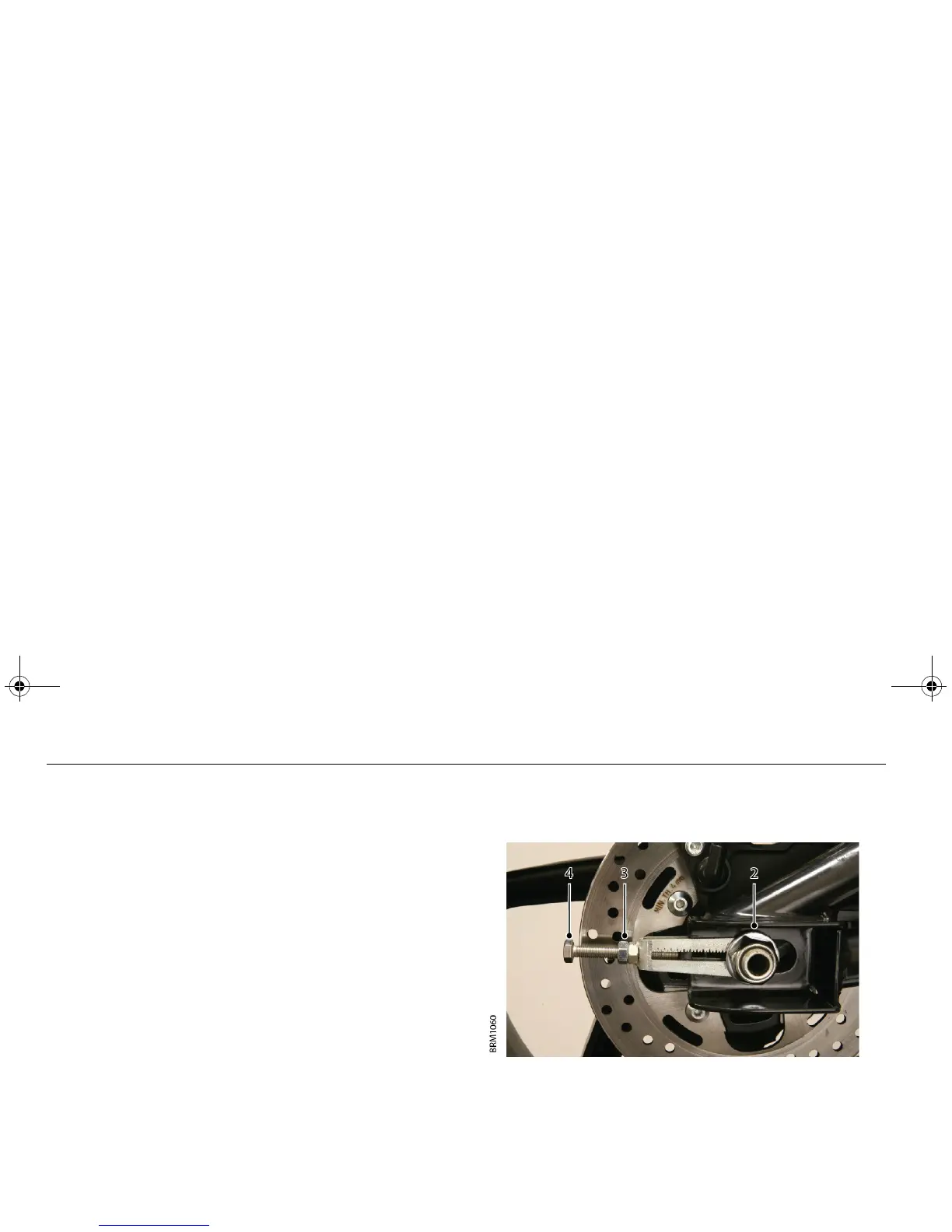 4. Turn both the left and right drive chain adjusting bolts an equal