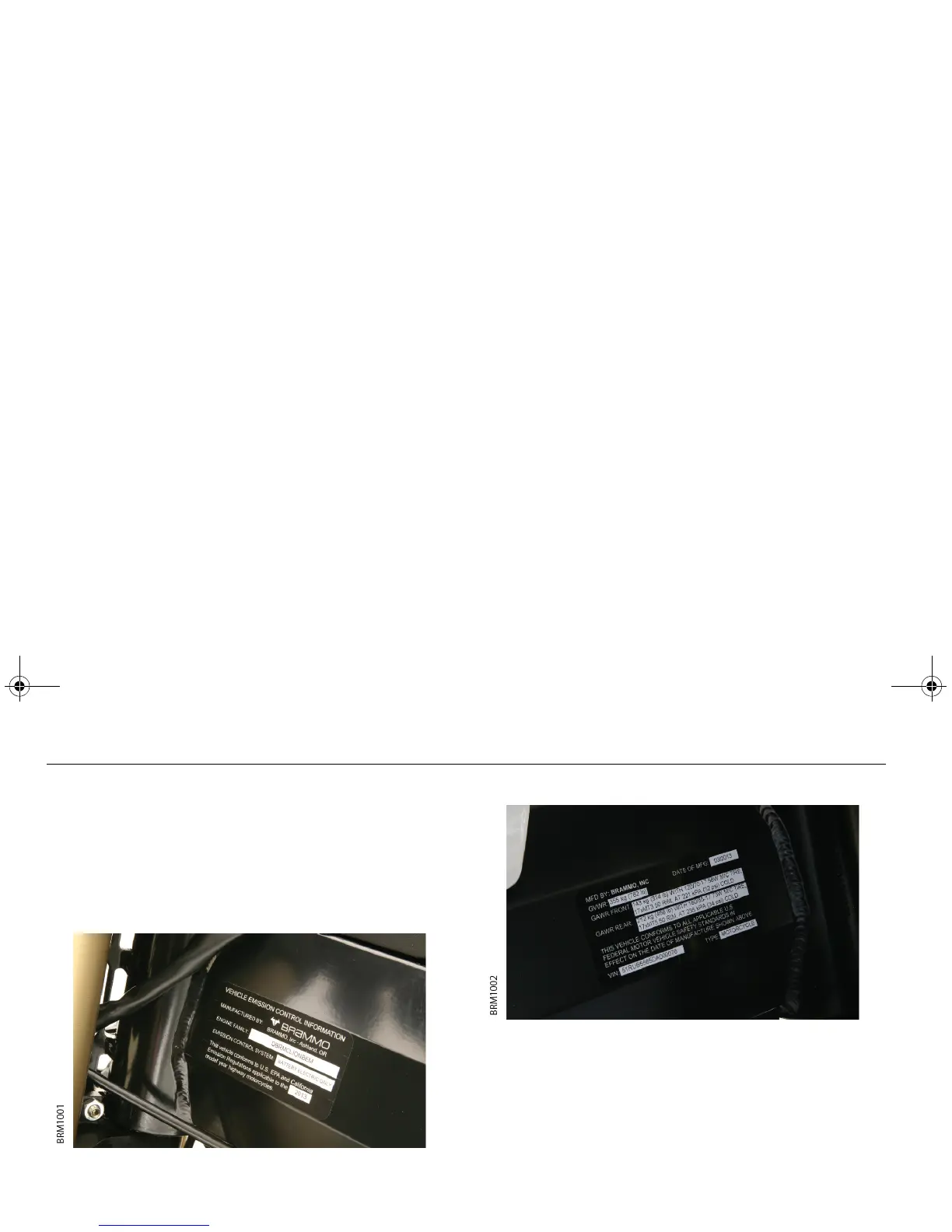 the suspension forks. The certification label shows the VIN, date of