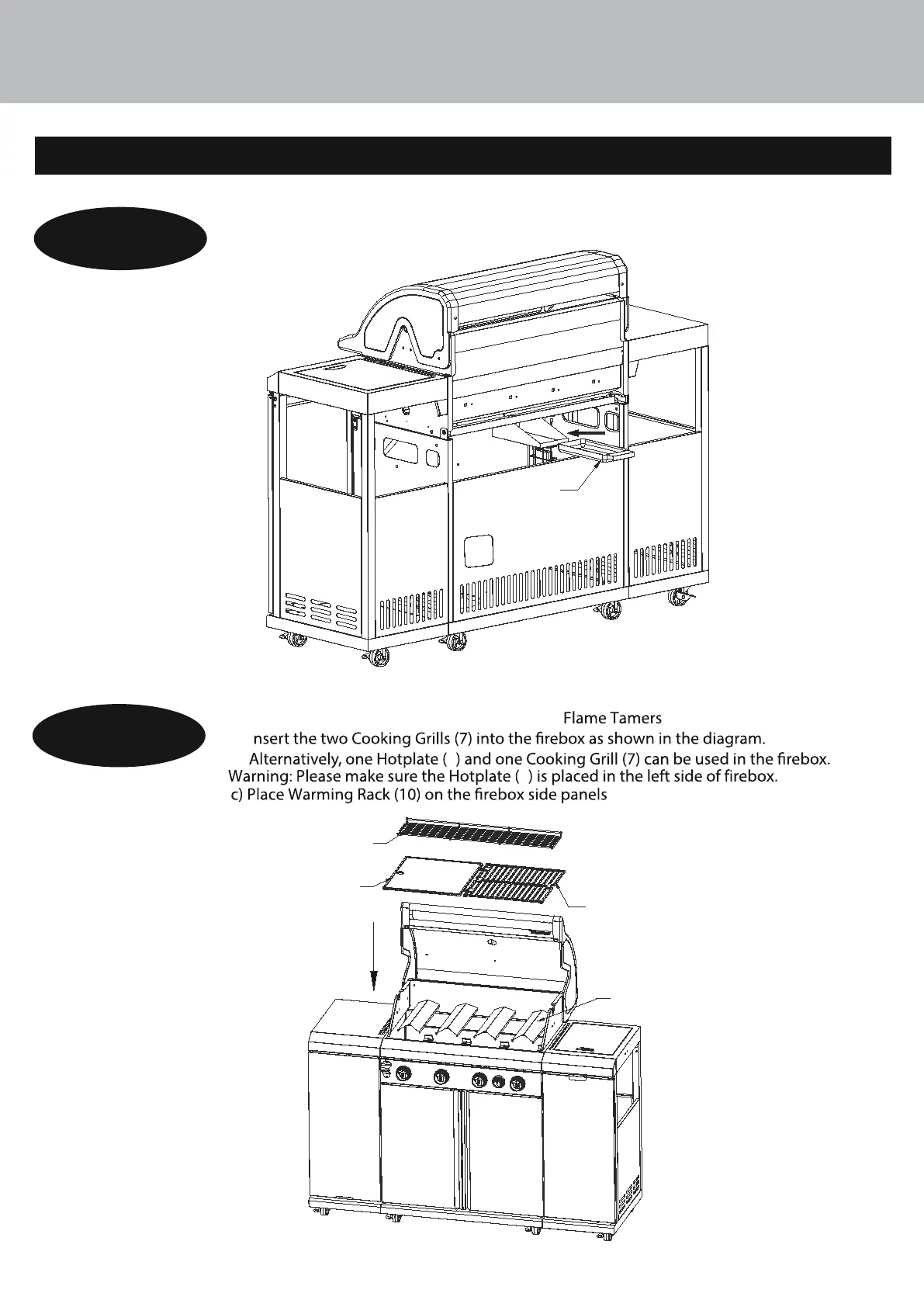 a) Open the barbecue hood and place the four (6) over the top of the burners.