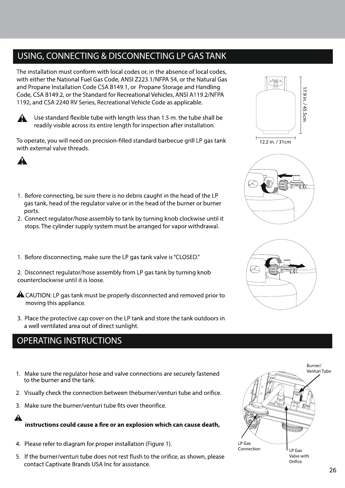 CAUTION: LP gas tank must be properly disconnected and removed
